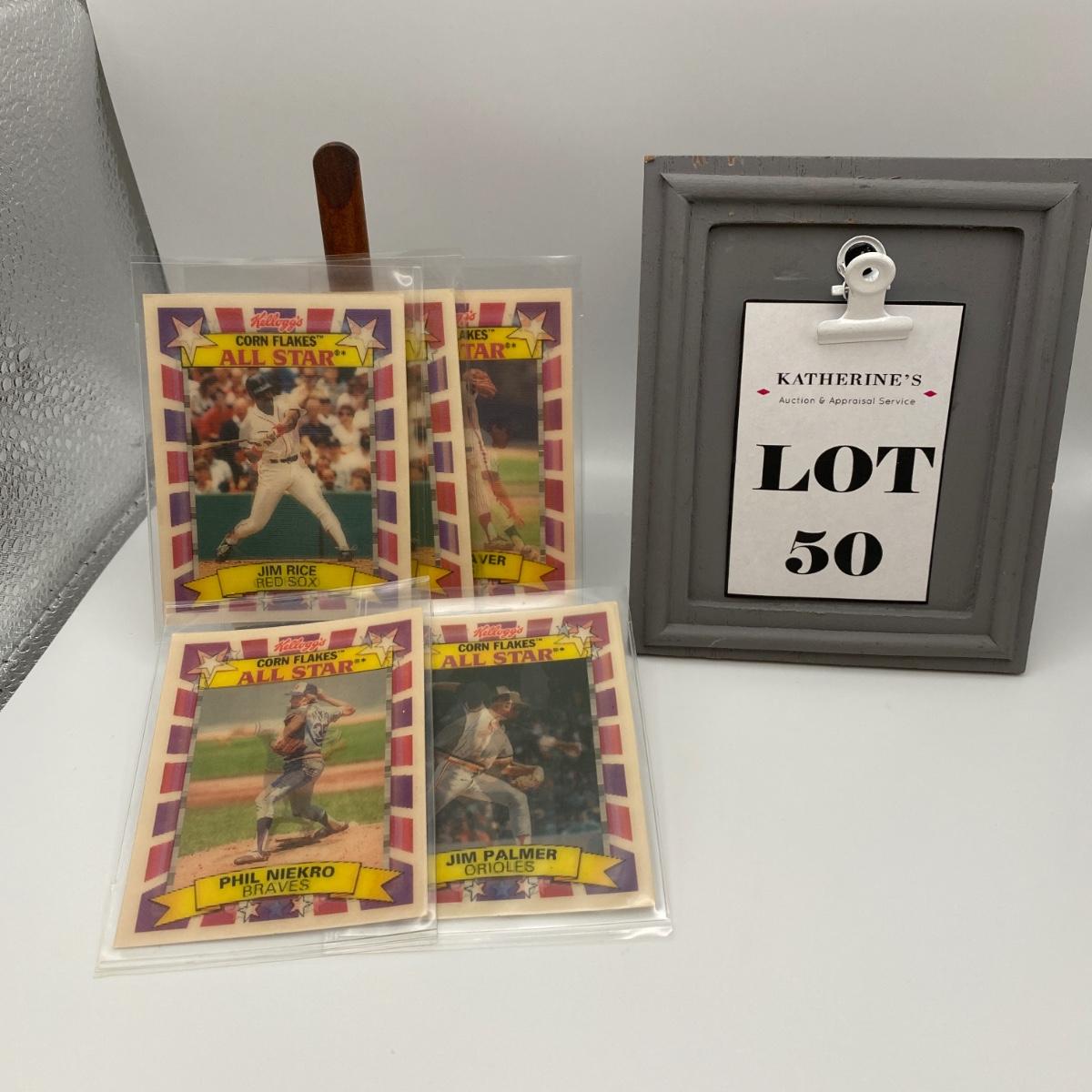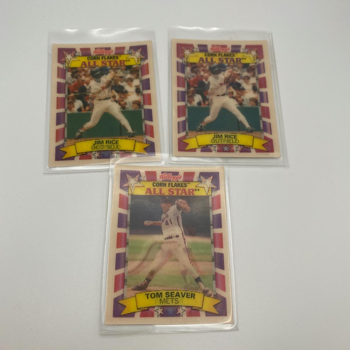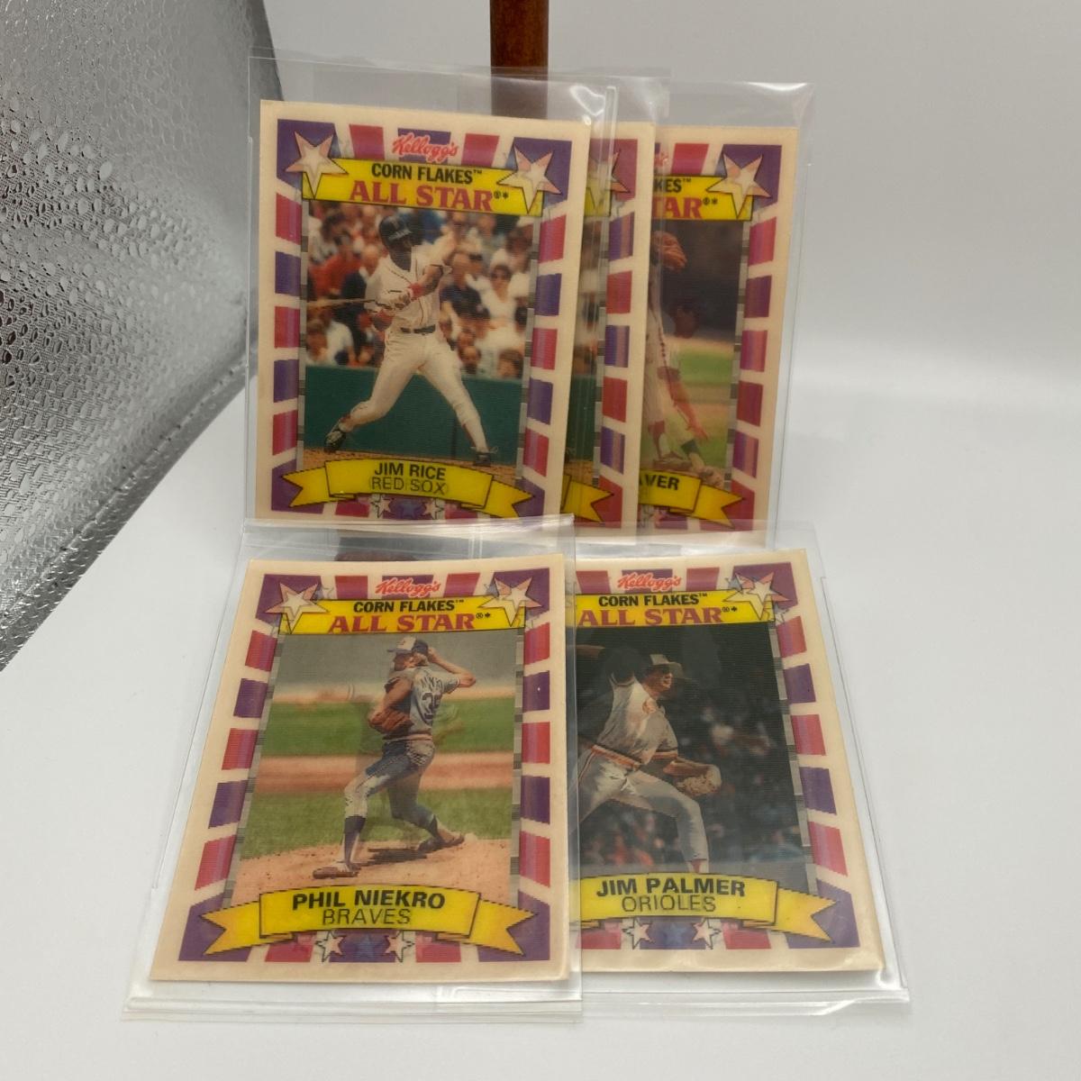 Five Lenticular Cornflakes all star collector cards two Jim Rice cards, one Jim Palmer, one Tom Seaver, and one Phil Niekro card. Please see photos for details and condition. ::: Shipping is available on this lot. If you require shipping you must let us know at the close of the auction. We will coordinate with you after the item has been won. Shipping fees will include insurance up to or exceeding the value of all items being mailed. If you have any questions regarding this lot please contact the auctioneer either via this website, by direct email or by phone. PICK UP TIMES and other important information can be found in the TERMS and DESCRIPTION of the auction. Please take a look for pertinent information. Thanks!