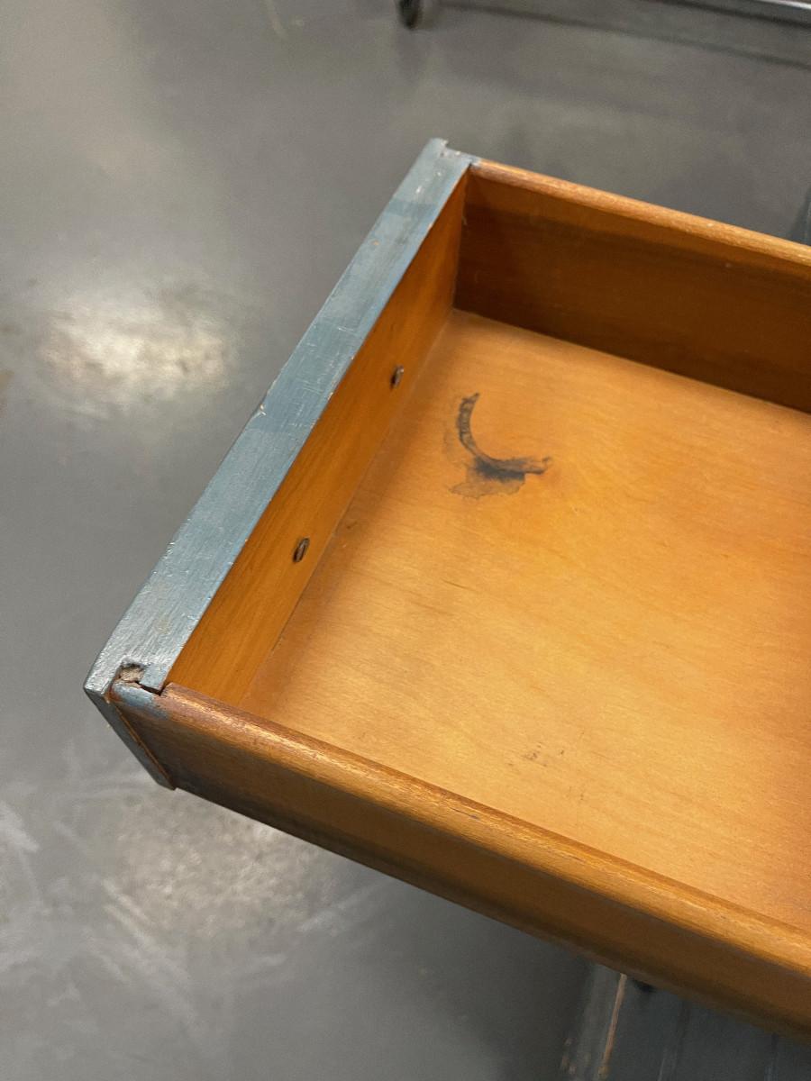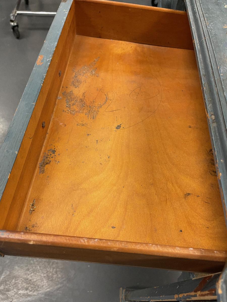 Appears to be Mahogany under the paint 43 x 22. x 30 - may need a cleaning or a sanding or both.