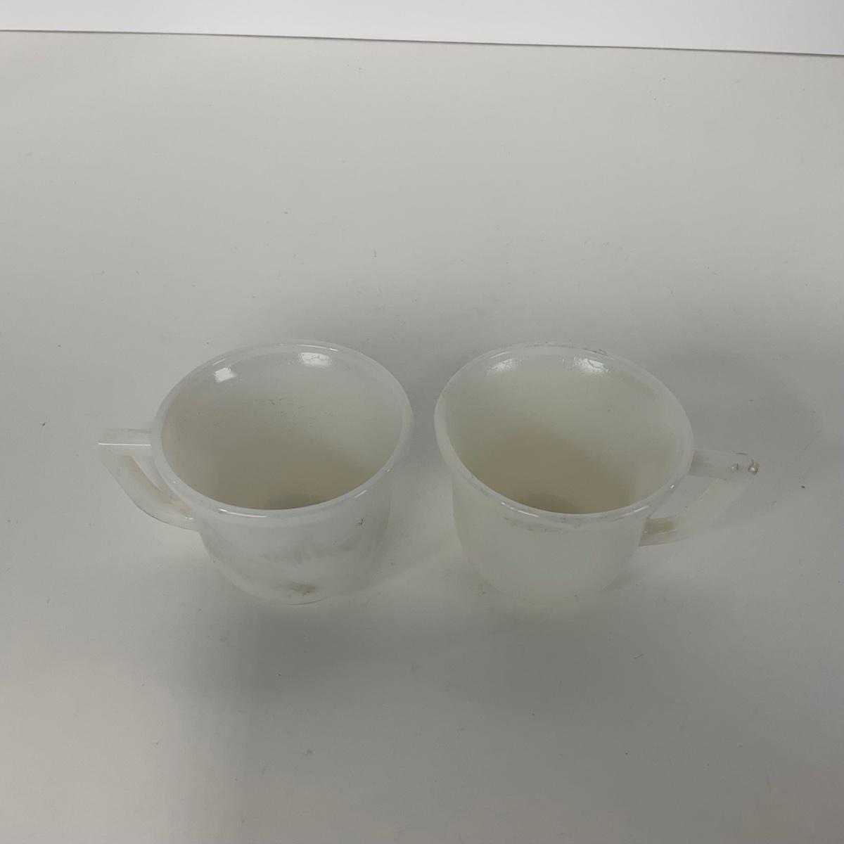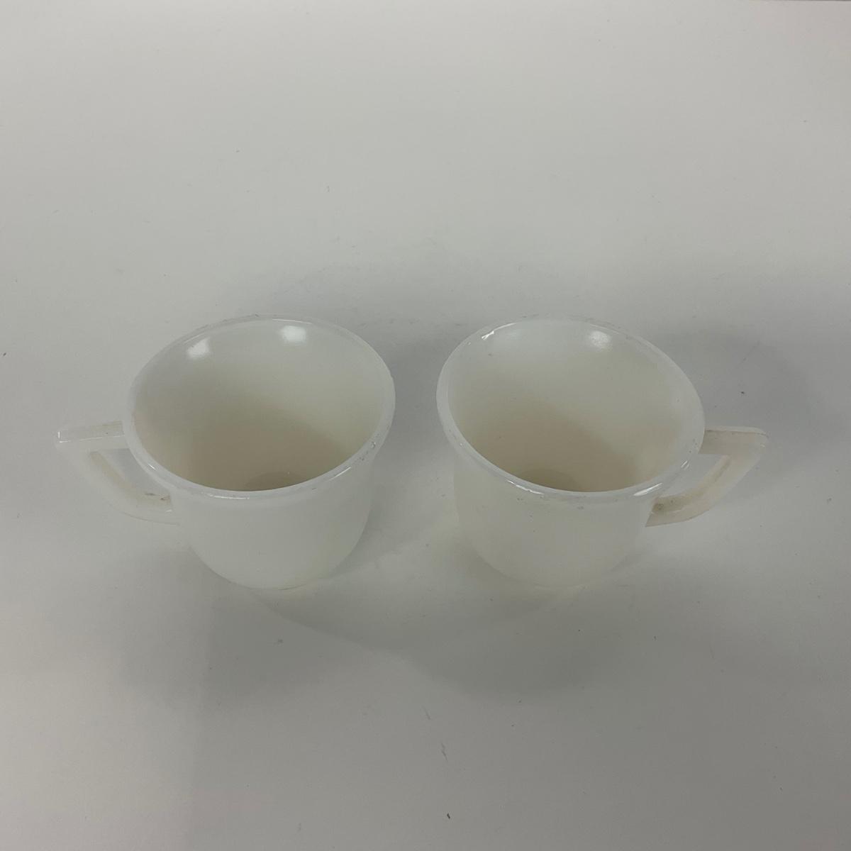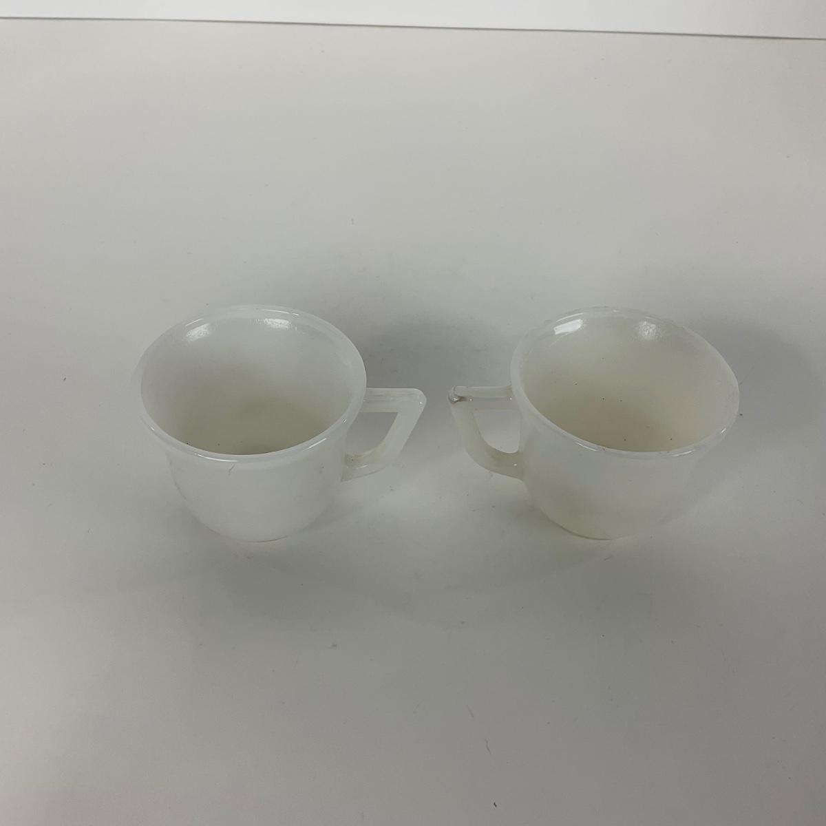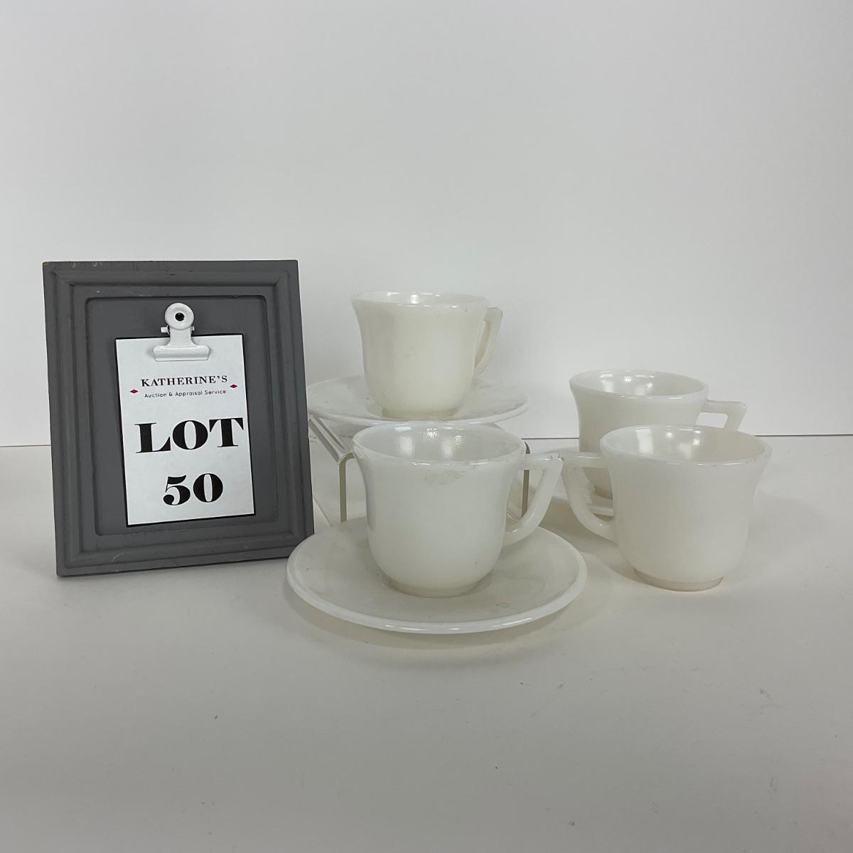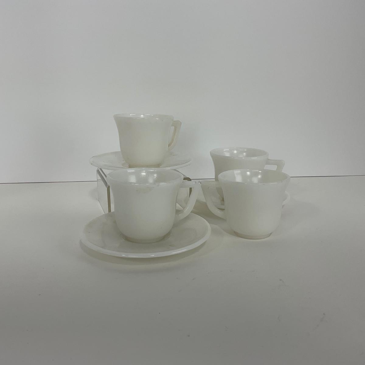 Seven pieces total including four cups and three saucers. Children’s sized and milk glass in color with some wear. Please see photos for details and condition. ::: Shipping is available on this lot. If you require shipping you must let us know at the close of the auction. We will coordinate with you after the item has been won. Shipping fees will include insurance up to or exceeding the value of all items being mailed. If you have any questions regarding this lot please contact the auctioneer either via this website, by direct email or by phone. PICK UP TIMES and other important information can be found in the TERMS and DESCRIPTION of the auction. Please take a look for pertinent information. Thanks!