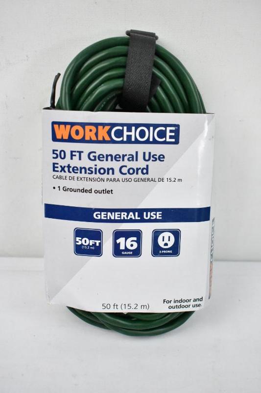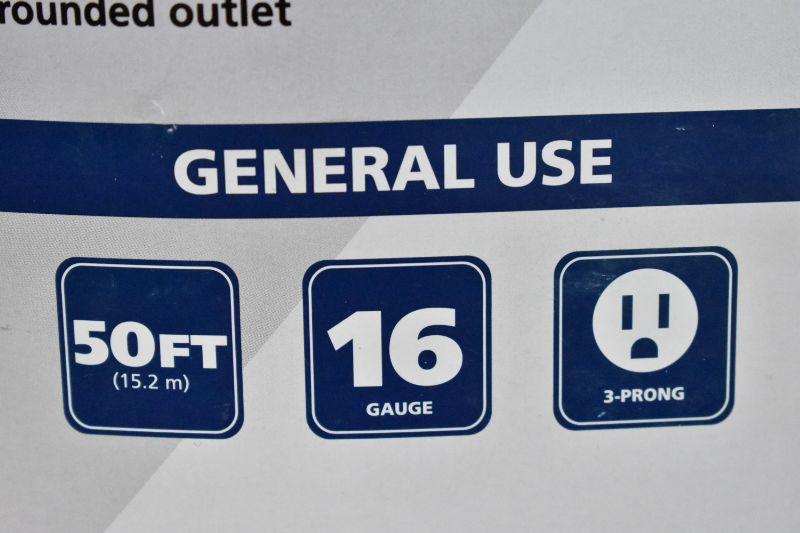 50 Foot Dark Green Extension Cord, 3 Prong, 16 Gauge - New