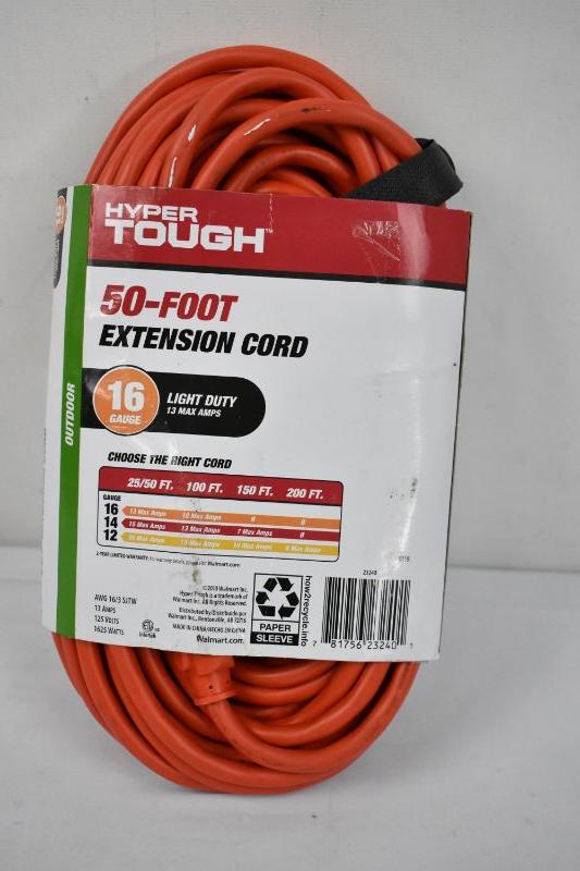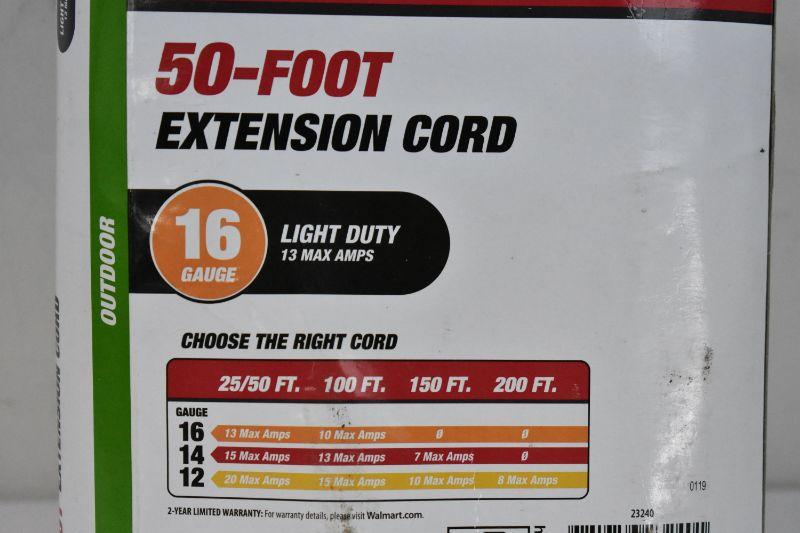 50 Foot Extension Cord, Orange, 3 Prong, 16 Gauge - New