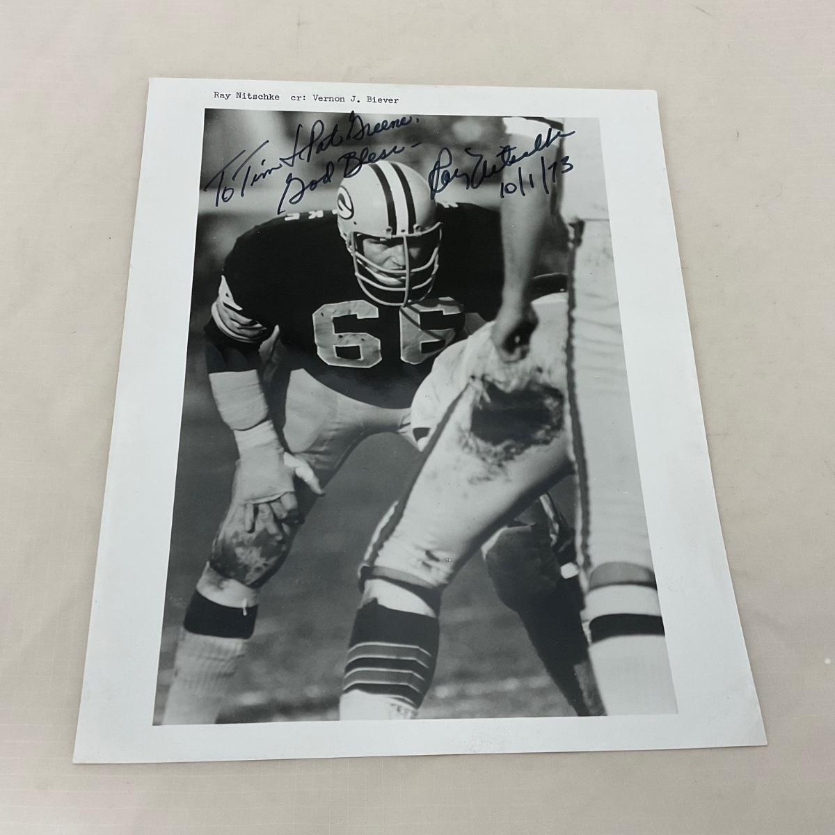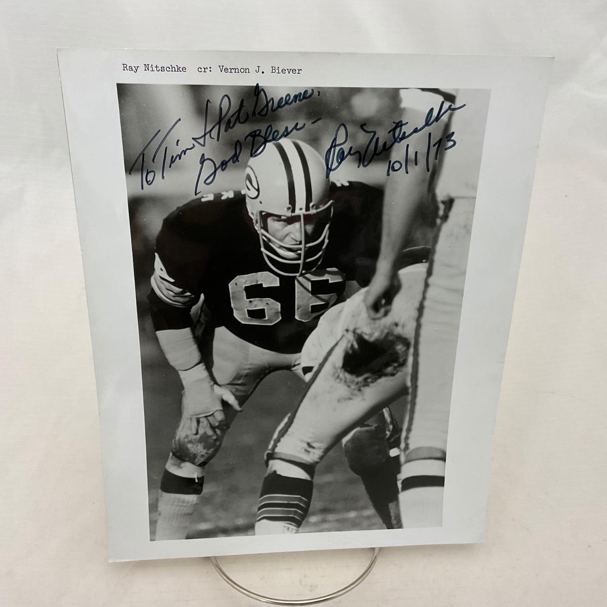 -50- FOOTBALL | Ray Nitschke Autographed Photo with Button and Program