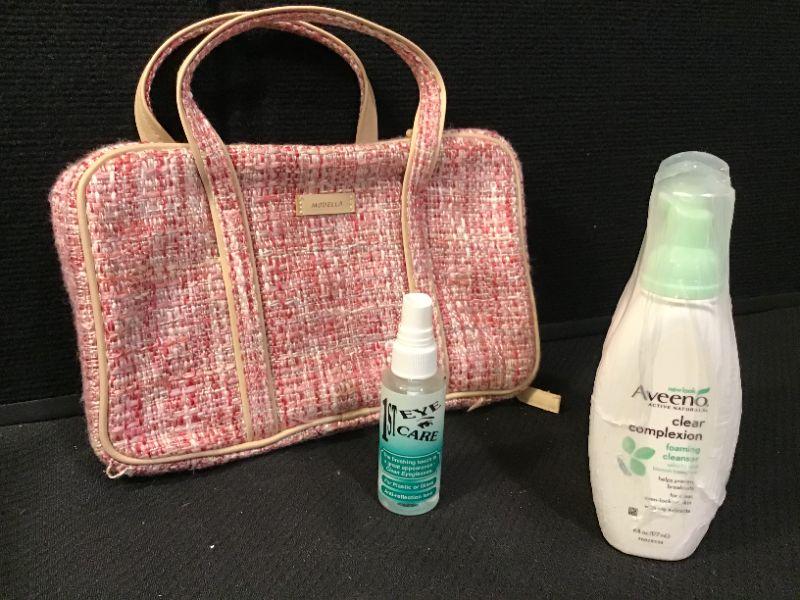 50 - Makeup bag, eyeglass cleaner, 3 new Aveeno Cleansers
