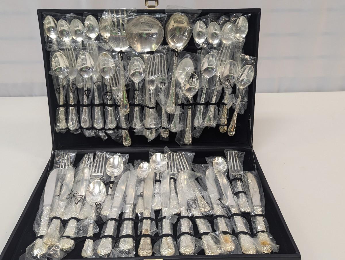 Silver Plated Flatware with Storage Box- Approx 50 Pieces