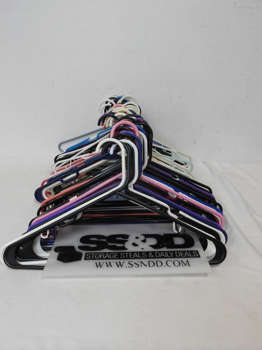 50+ Plastic Hangers, Various Colors: Black/Blue/Purple/White/Pink/Peach/Green