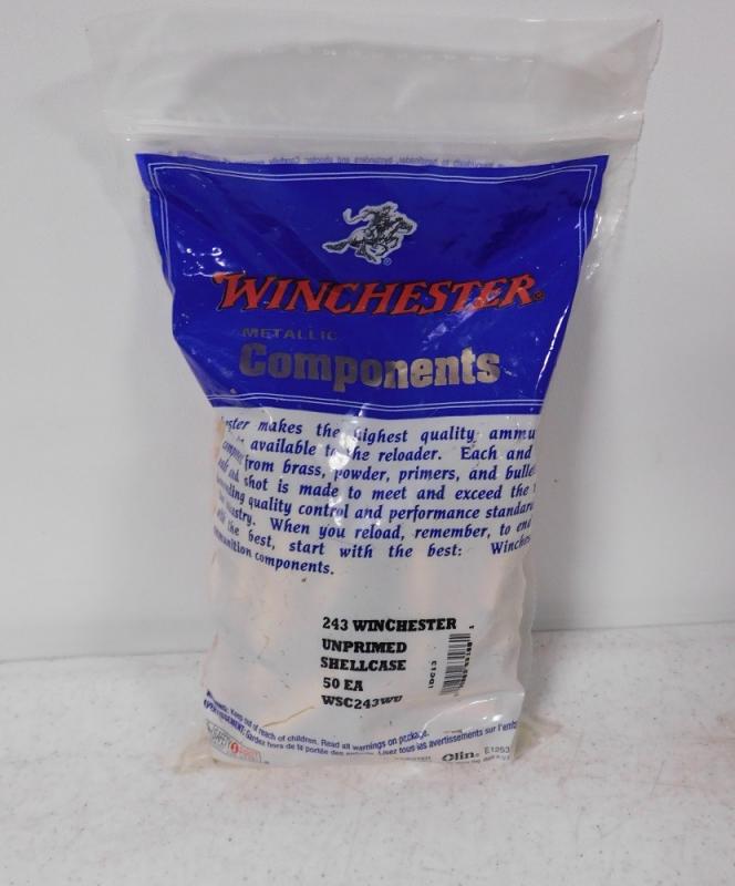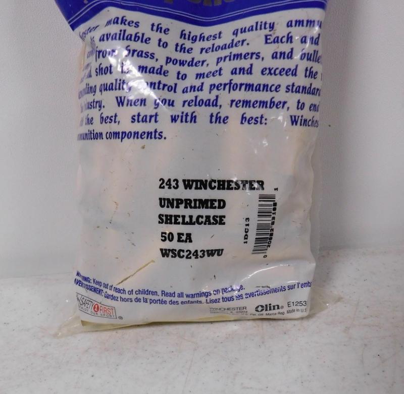 50 Round 243 Winchester Unprimed Shellcase (2 of 2). Unopened bag.