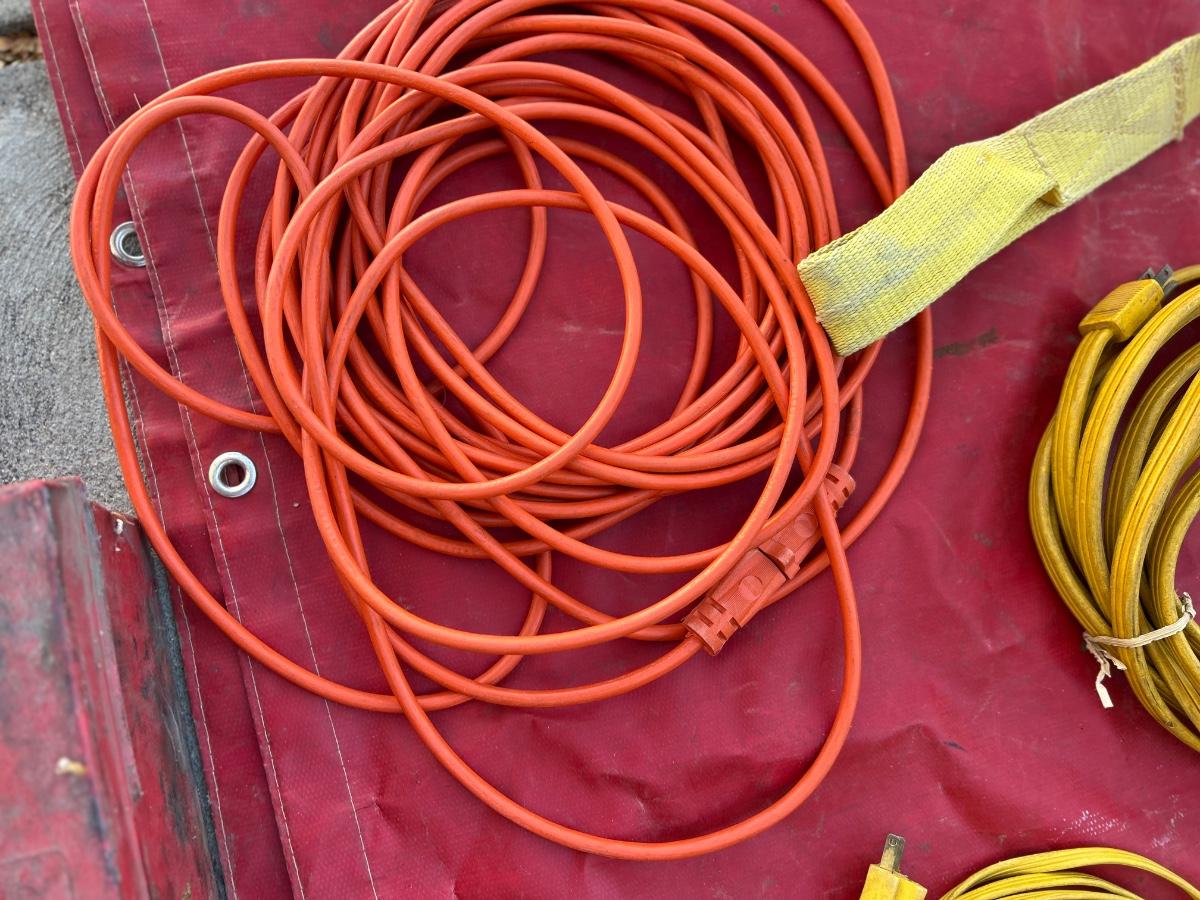 50” TREE SPAD COVER, A TREE BALL TOTE LIFTER AND EXTENSION CORDS