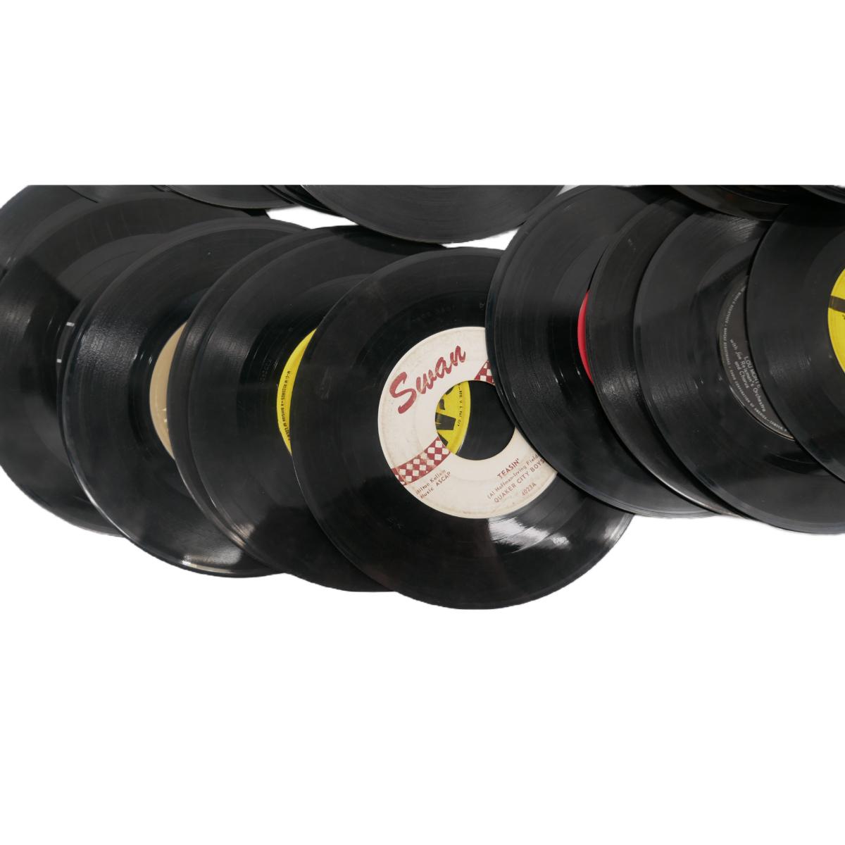50 vintage loose/no sleeve 45 rpms records. Various aritsits and genres. Mostly rock, folk, country, and easy-listening. Majority is 60s-80s music. Good overall condition, there may be scratches, scuffing, and dust. Lot weighs 5 lb. (M19)