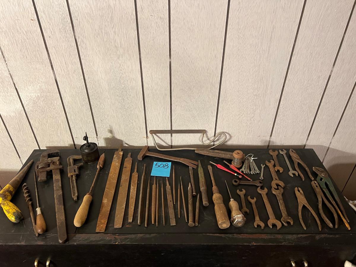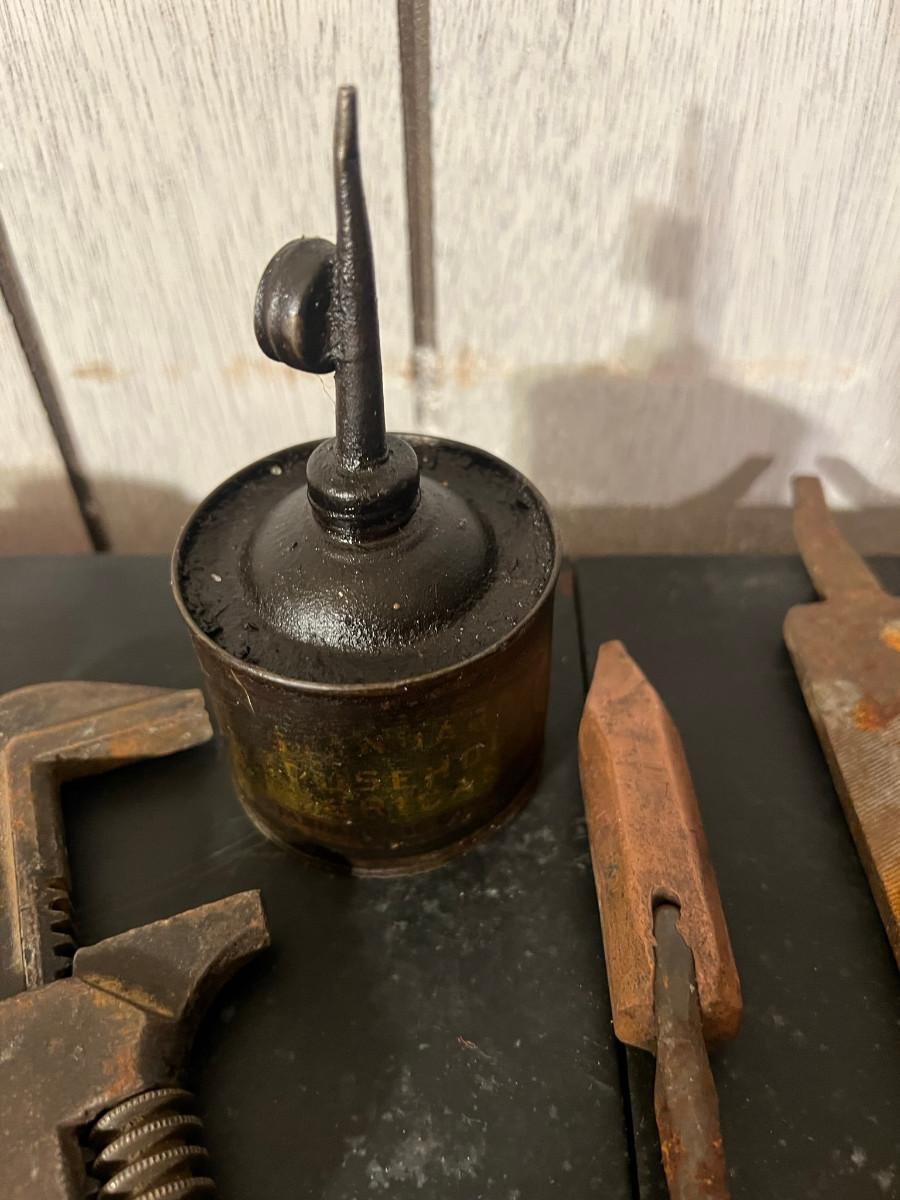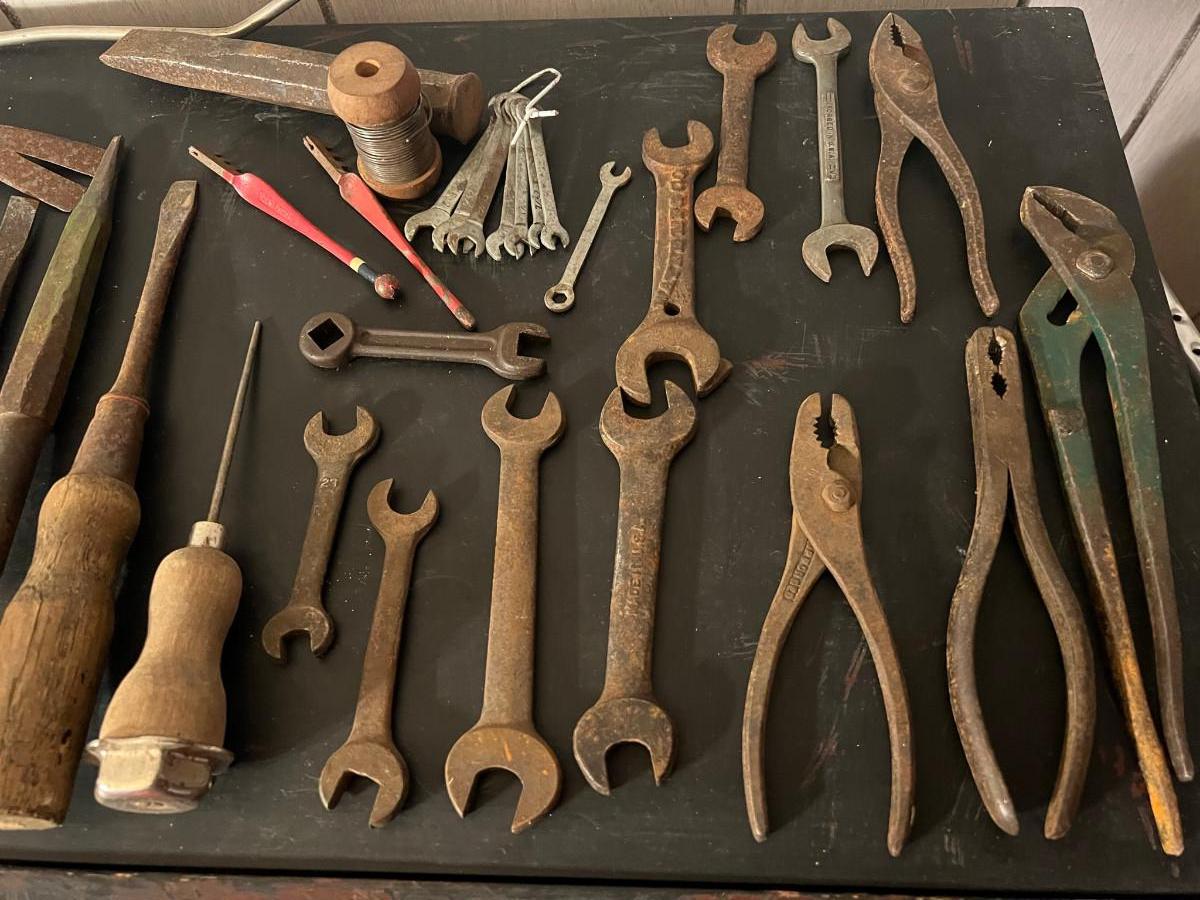 50 Vintage tools and one vintage oil can as is Craftsman, Wayne mfg Co. Kraeuter 1943 USA forged, Ford usa, Westchester, Red Devil, made in USA