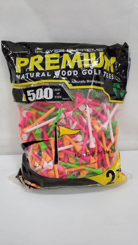 500 Bag of Tees, Natural Wood Golf Tees, 2 3/4" - New