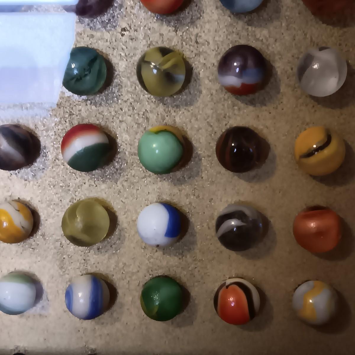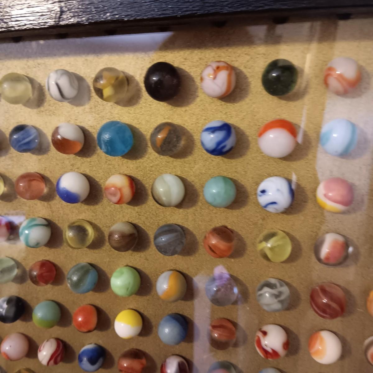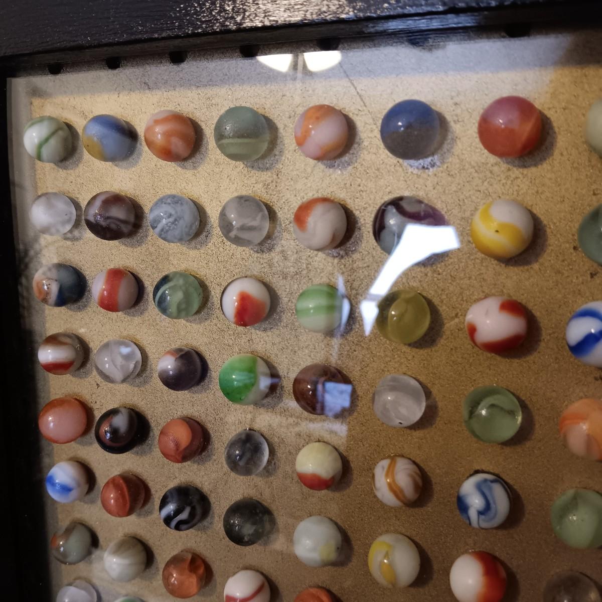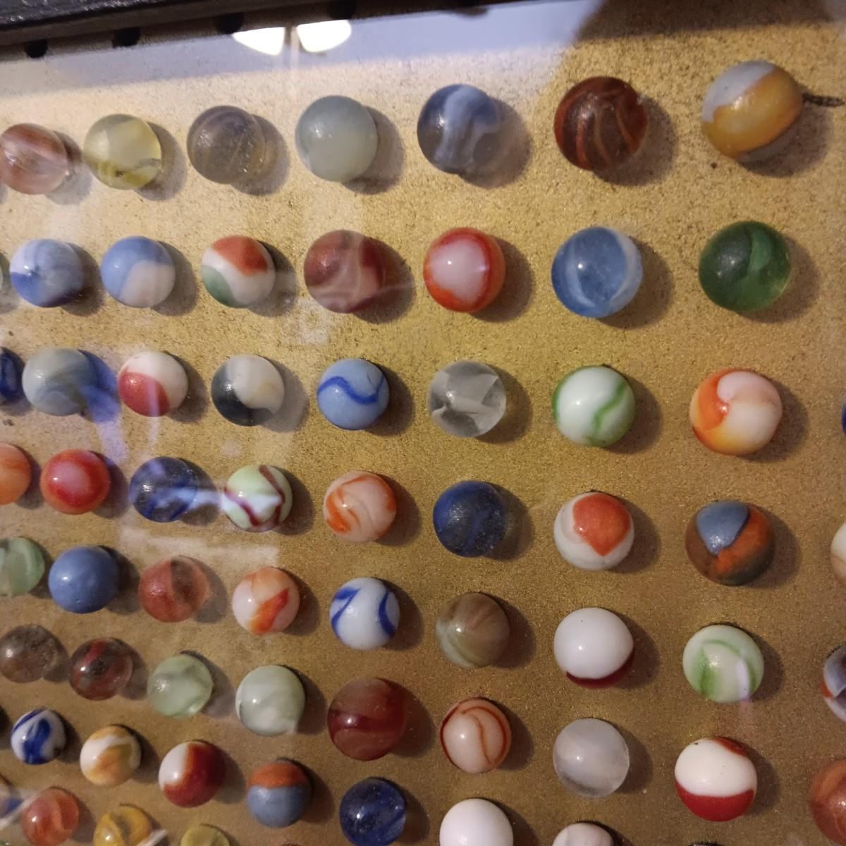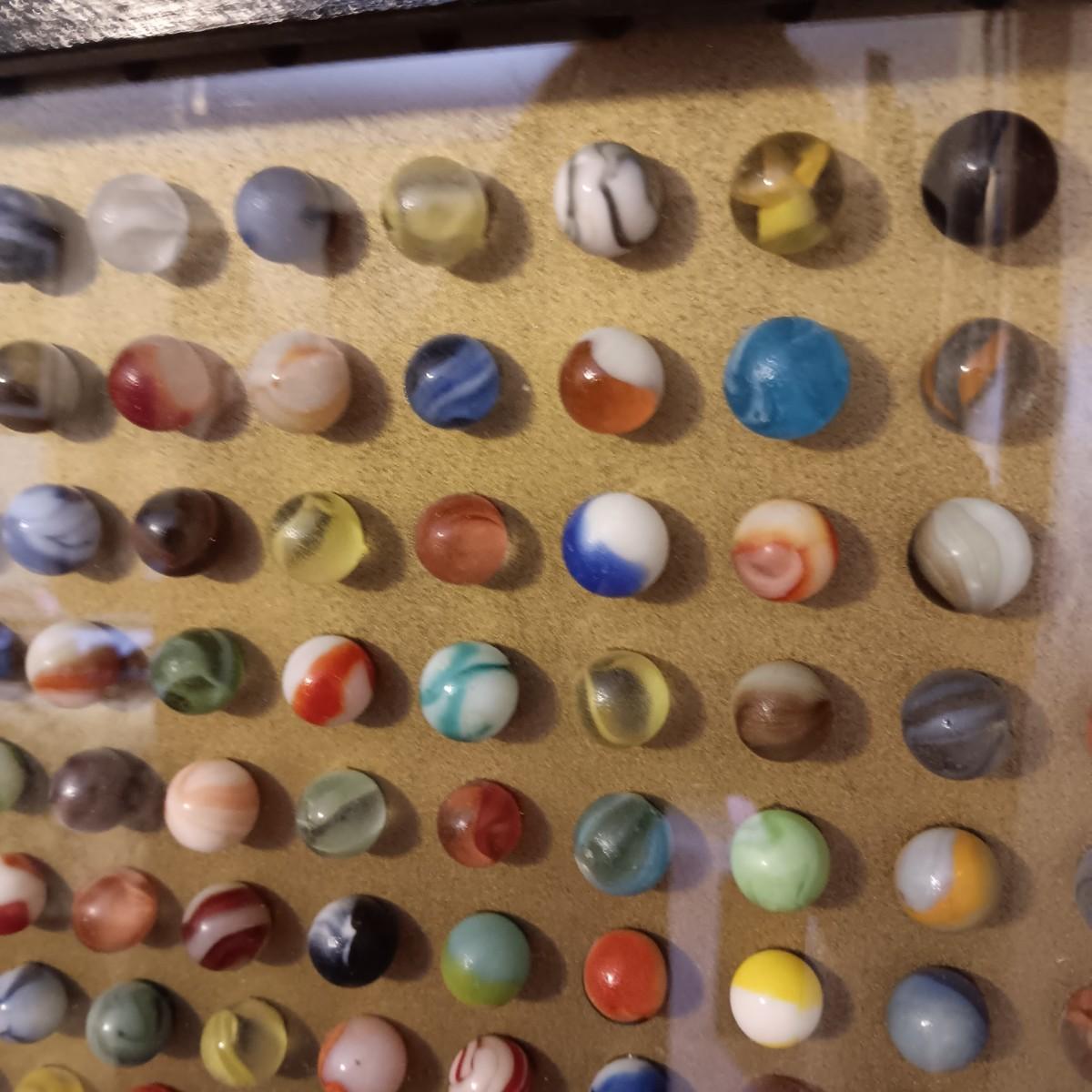 WOW!! 500+ MARBLES, 79 YRS OLD IN A GLASS FRONT DISPLAY CASE