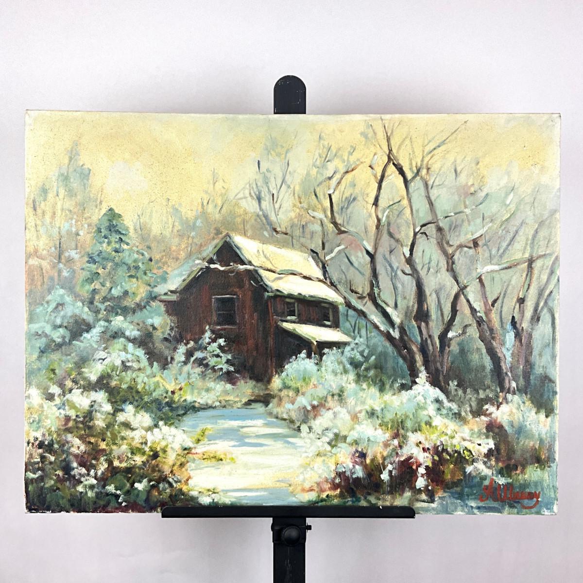 500 Oil On Canvas "Winter In Unionville" Signed Anne Allbeury Hock