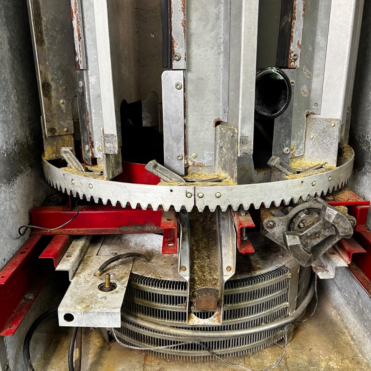 Crafted with classic design and period-correct details, this machine is an excellent addition to any Coca-Cola collection, game room, retail display, or vintage décor setting. It accommodates approximately 96 eight-ounce returnable Coca-Cola bottles and utilizes a rotating vertical bottle drum.
