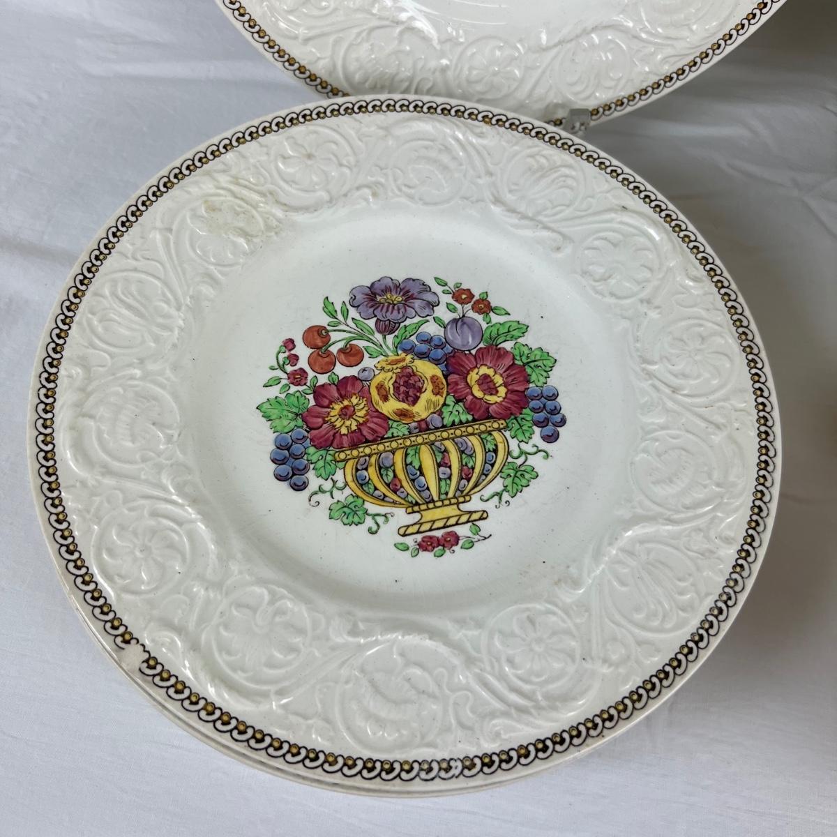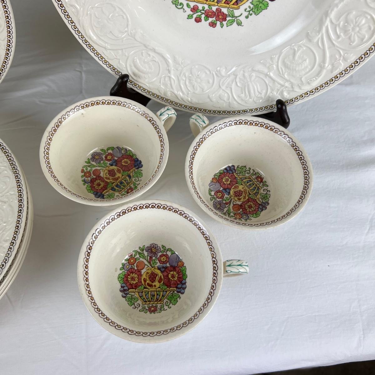4 dinner plates (two stained) , 6 sandwich plates (one chipped) , 5 teacups