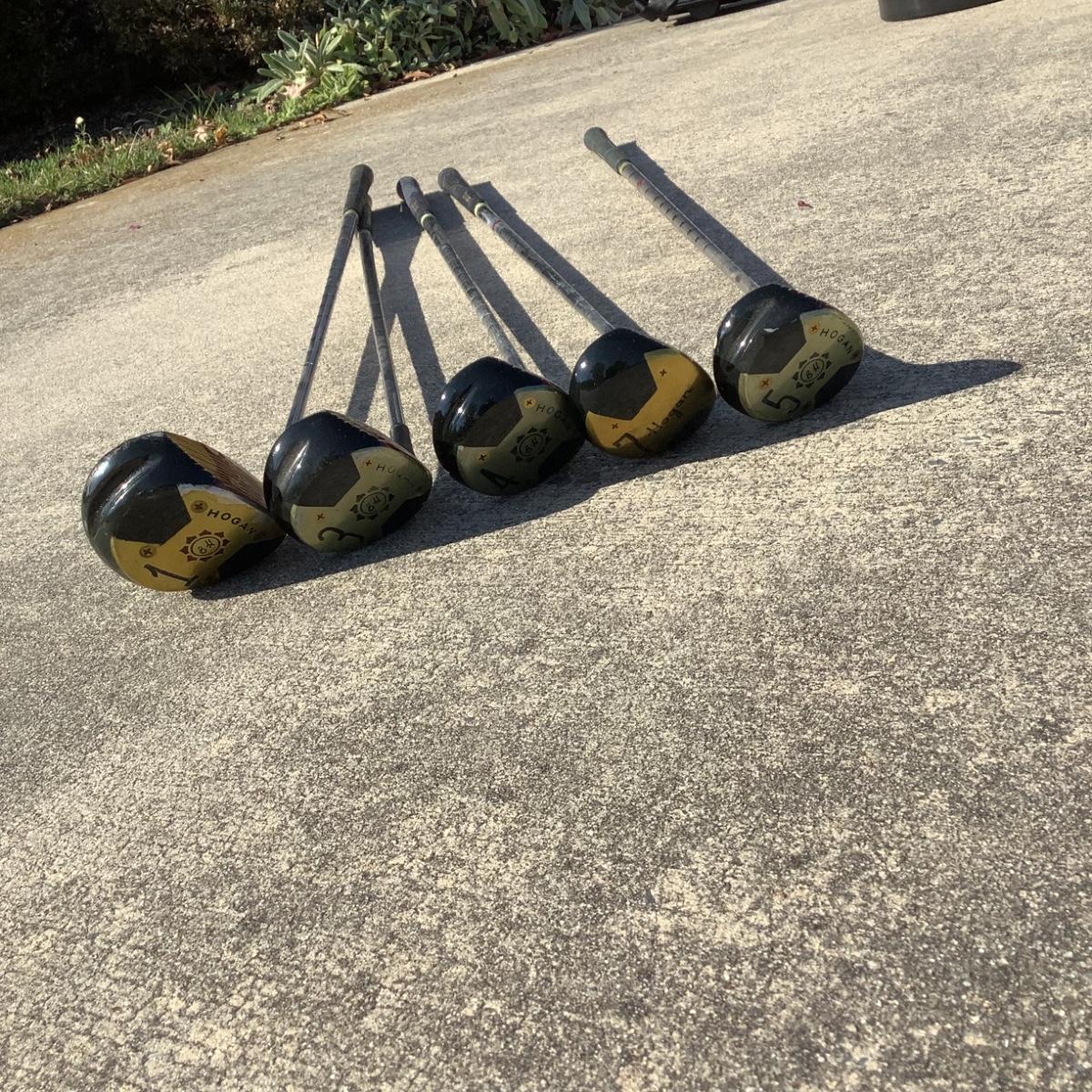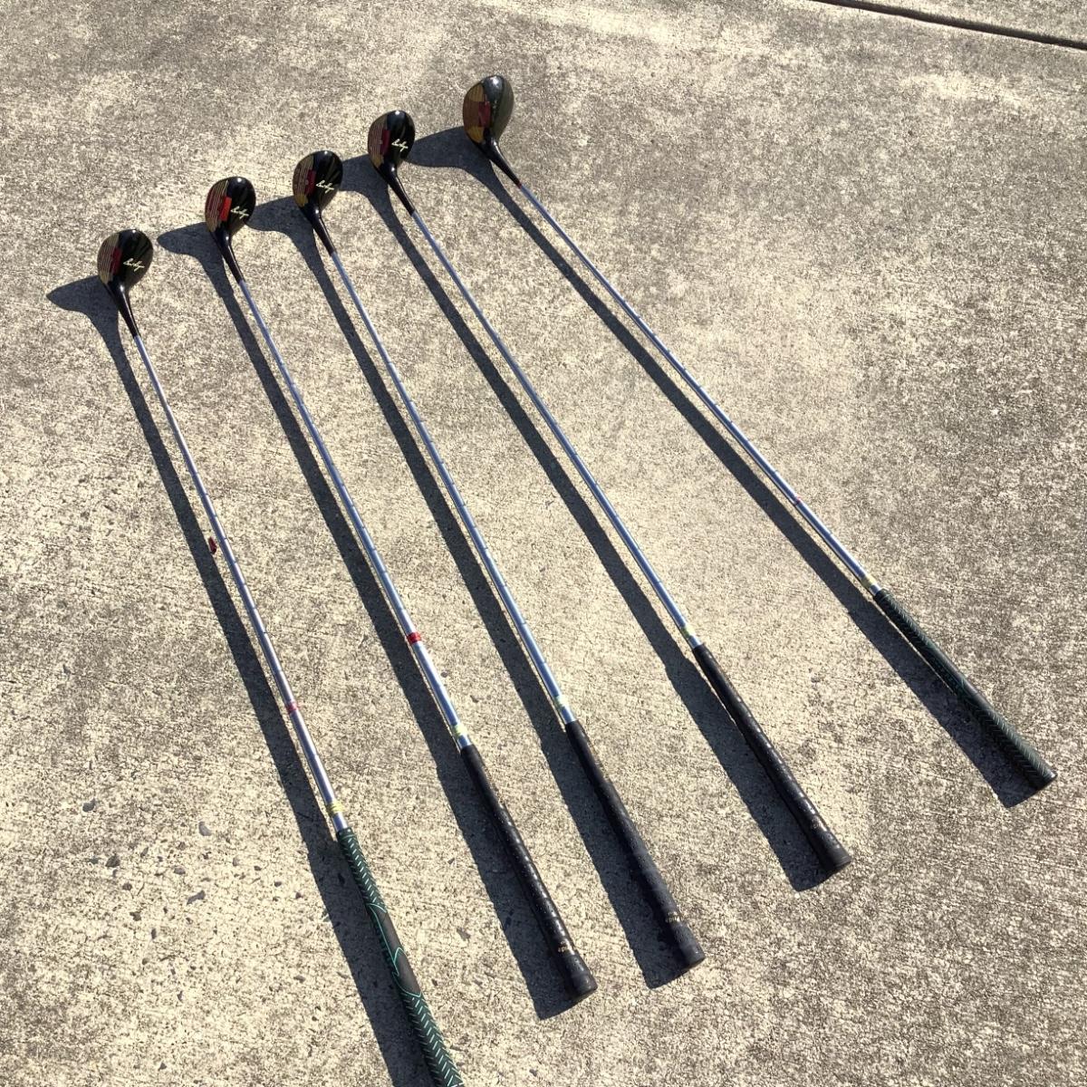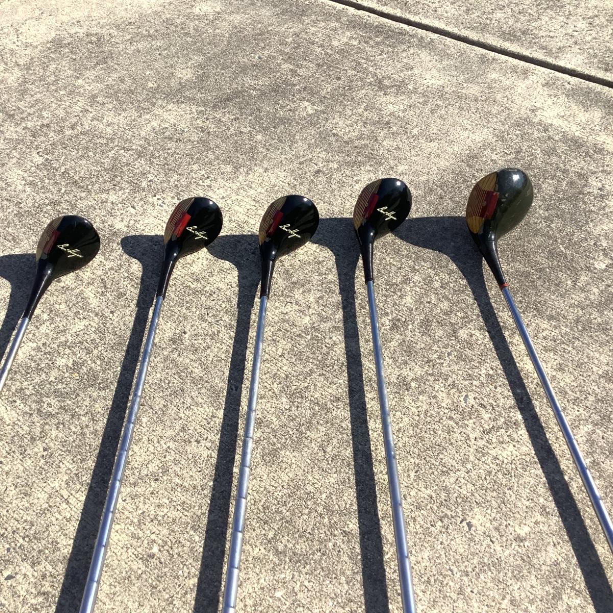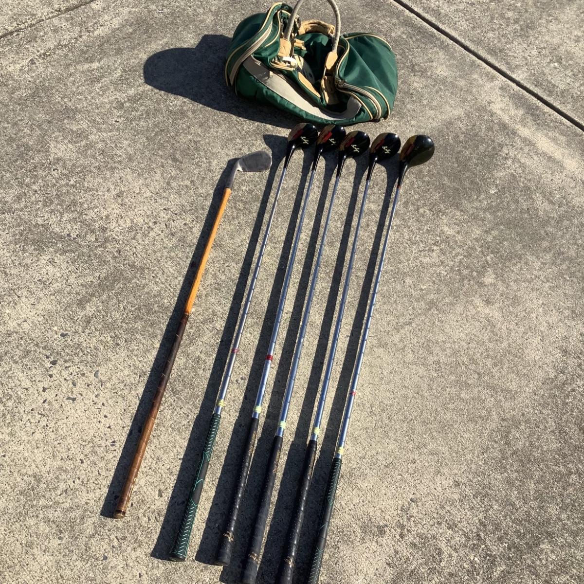 Golf clubs have a 36 inch handle the head of club is wood and there is a 1, 3, 4, 5, 7. Includes country club duffle bag