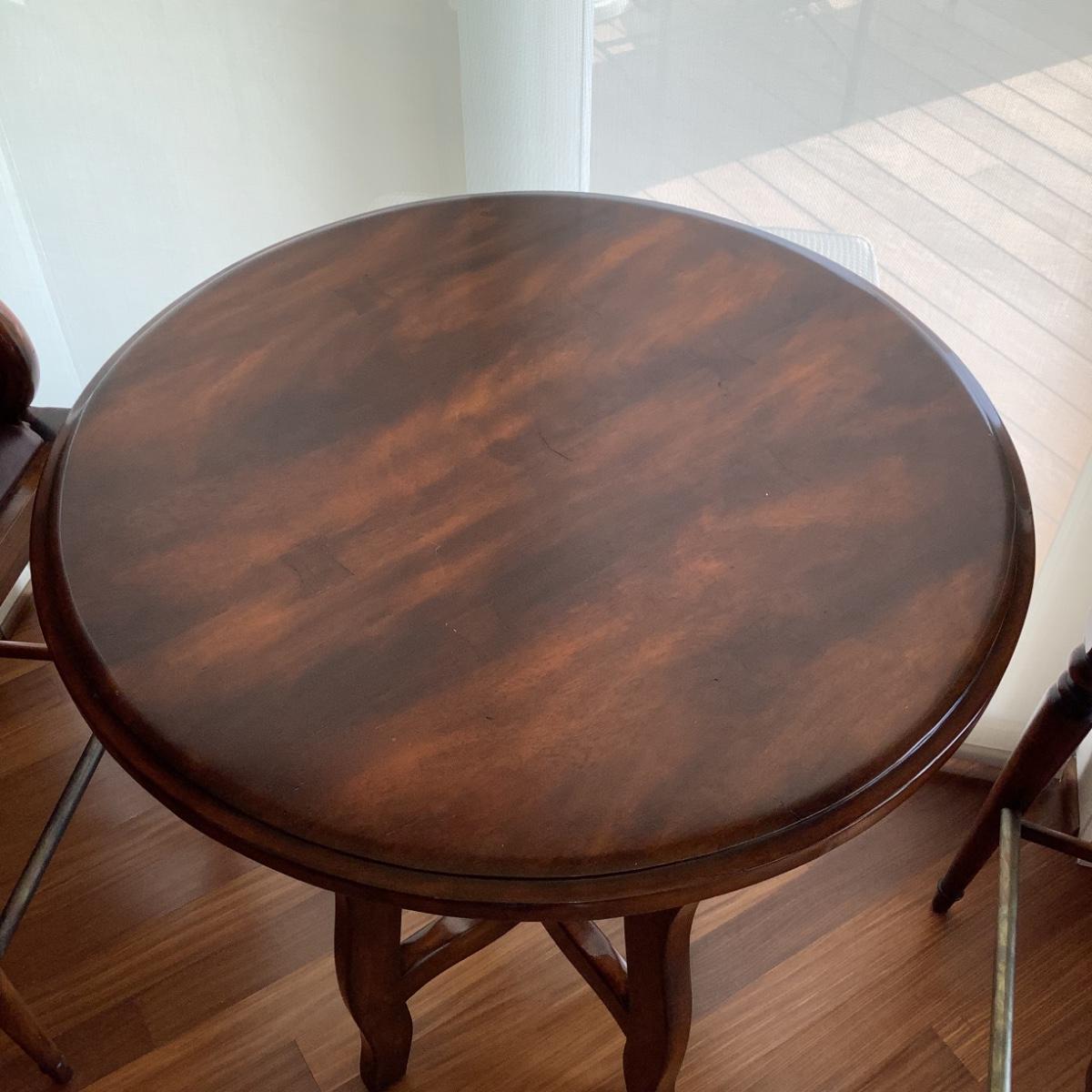 Table measures 33.5" diameter x 39.5" high