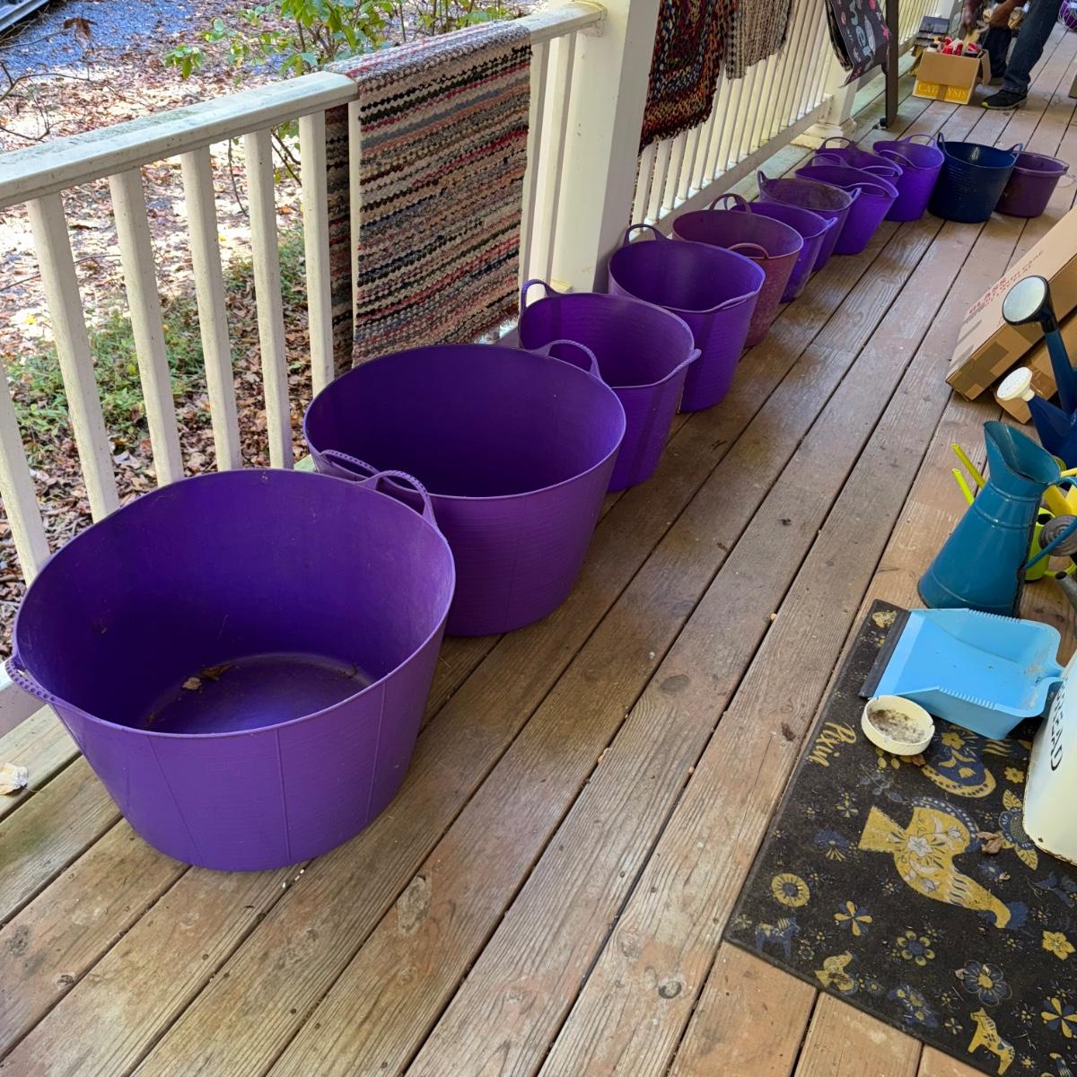 503 “Gorilla” Flexible Plastic. Tubs. Great item for multiple uses in & outdoors. Approximate diameters range from 12 inches, 16 inches, and 24 inches, color purple