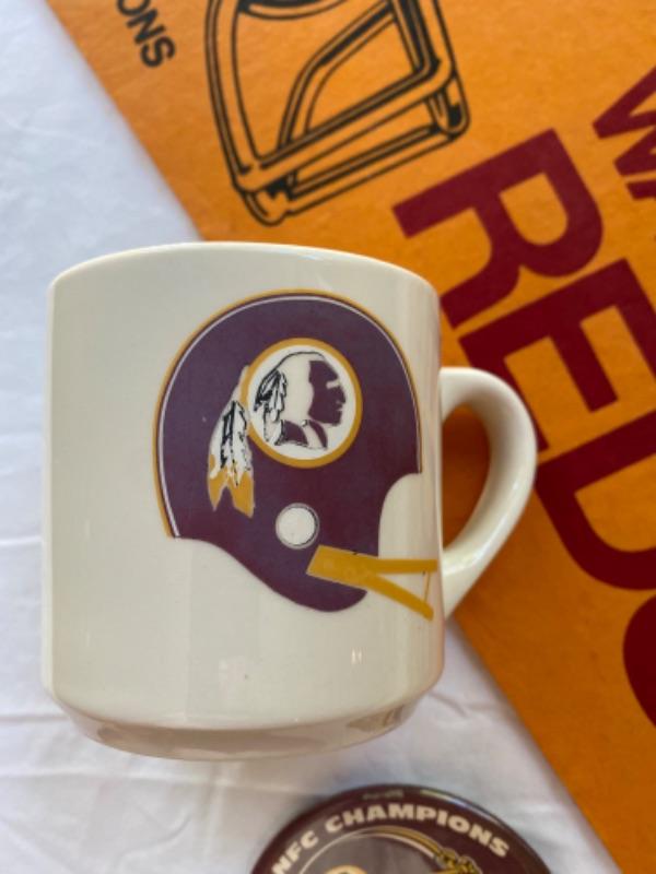 Redskins Football Collectible Pennant with Mug and Glass mug with pin from Super Bowl