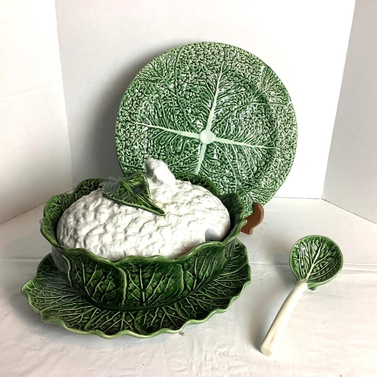 503 Subtil Portugal Cauliflower Tureen With Matching Spoon & Majolica Plate