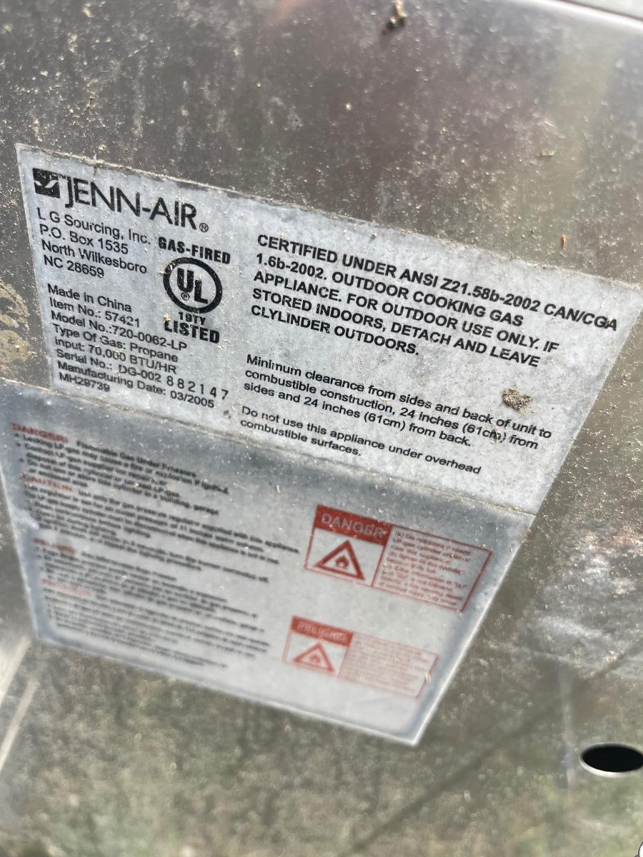 5030 Outdoor JENN-AIR Model: 720-0062-LP Stainless Grill with Burner & Accessories