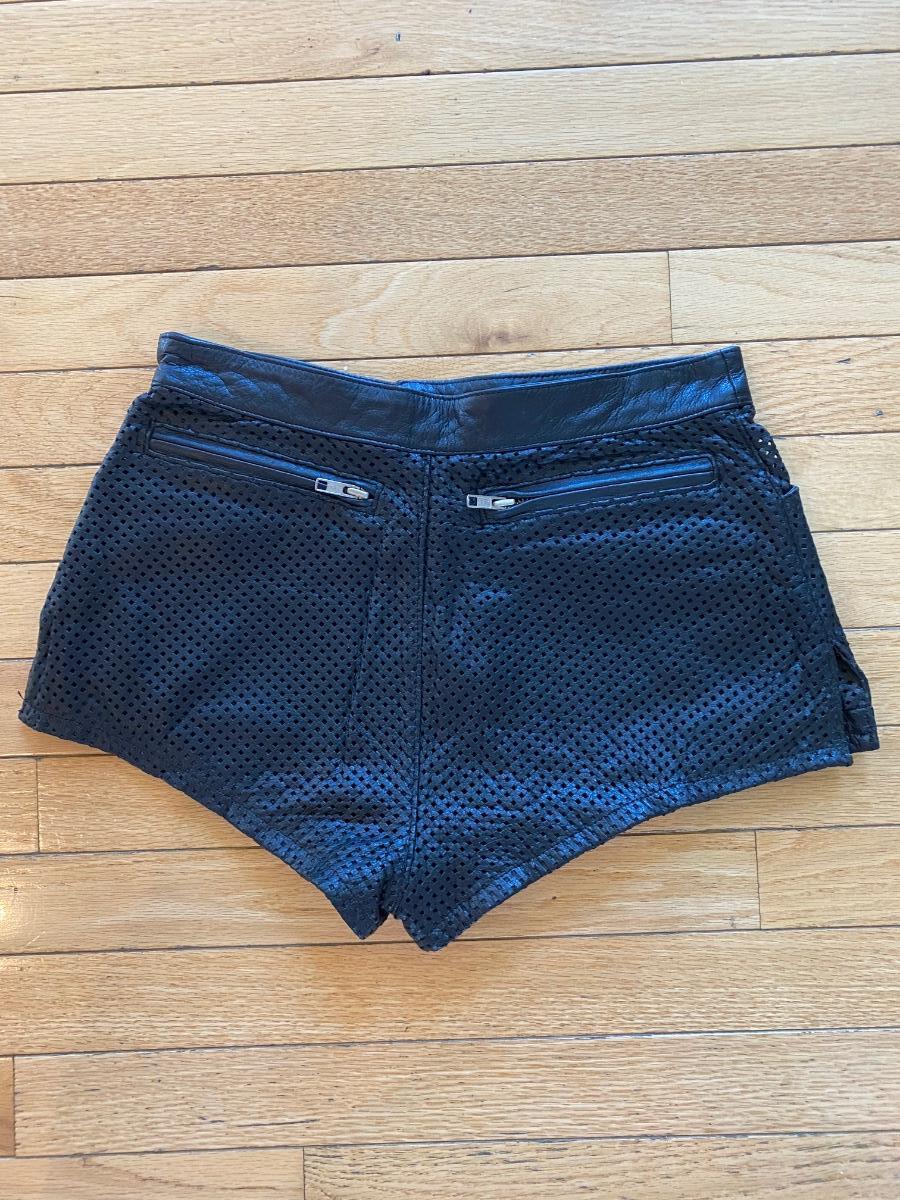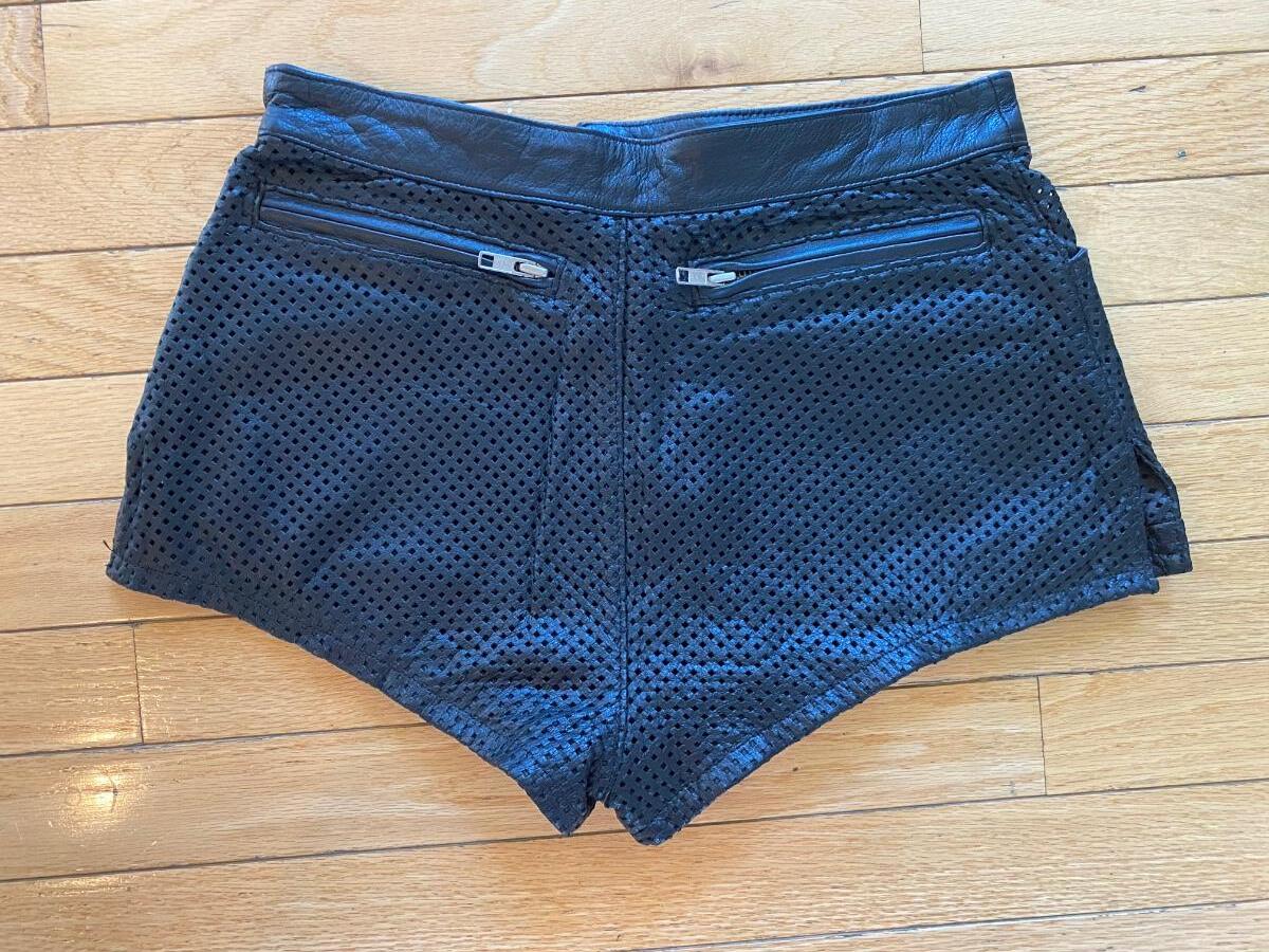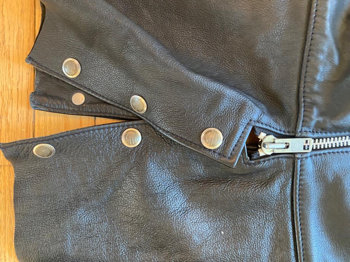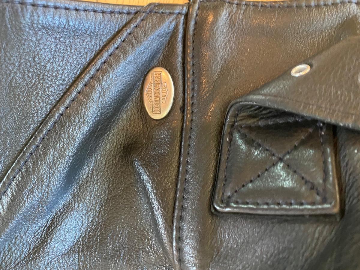 Women’s leather clothes. Women’s leather vest by Winter size small. Women’s leather shorts by Harley Davidson size 4. Women’s leather chaps by Harley Davidson size extra small.