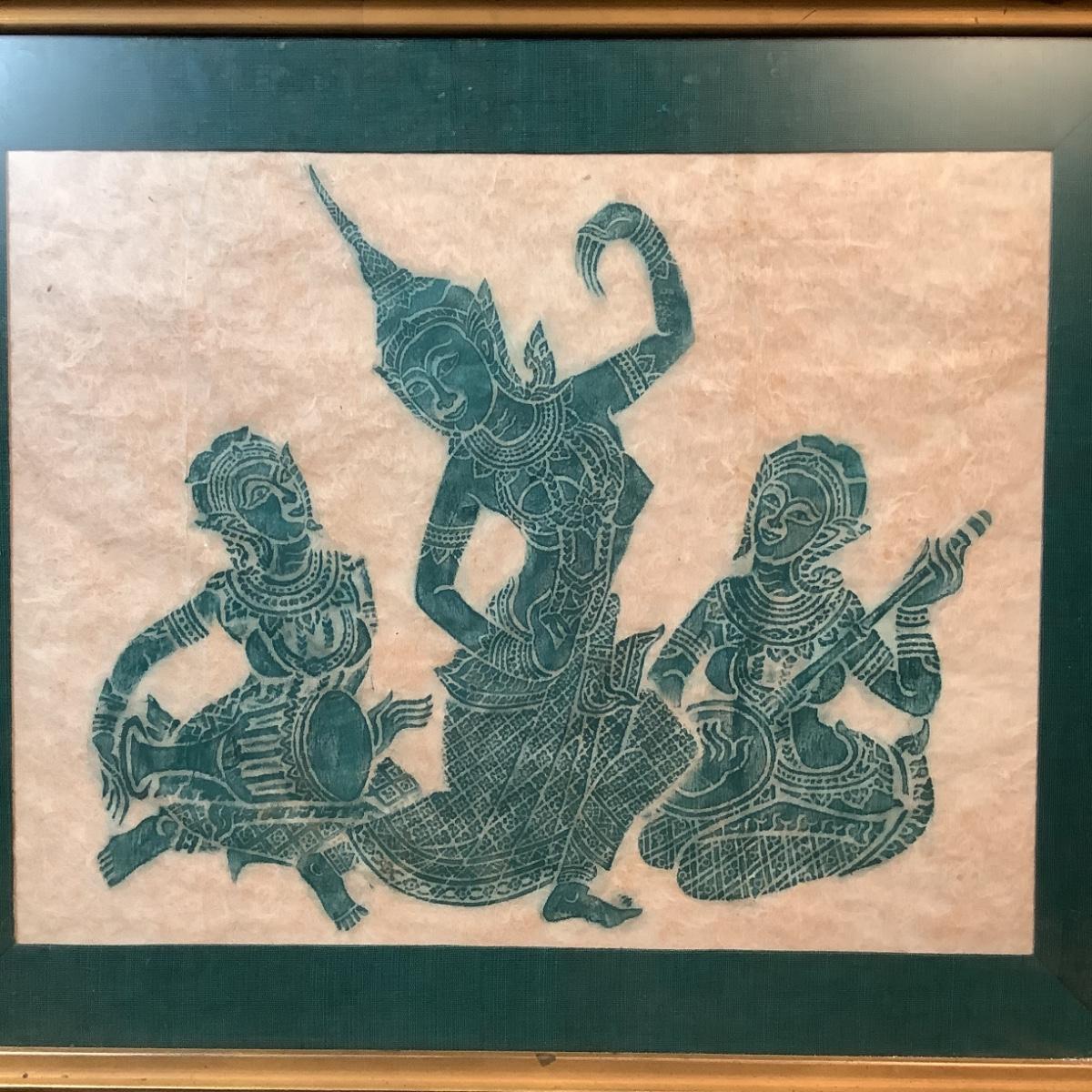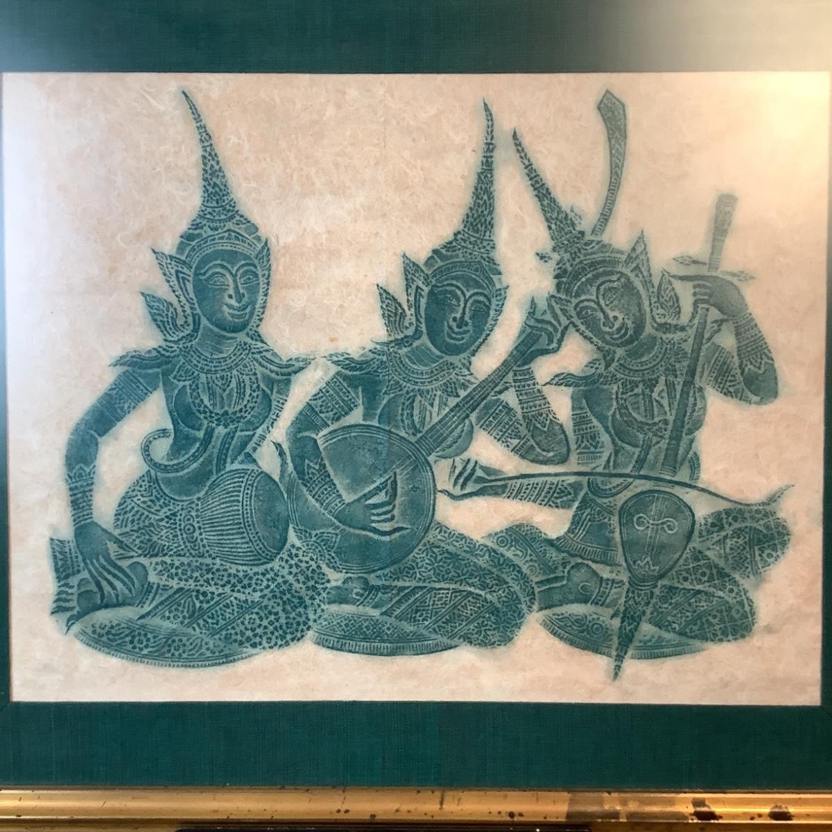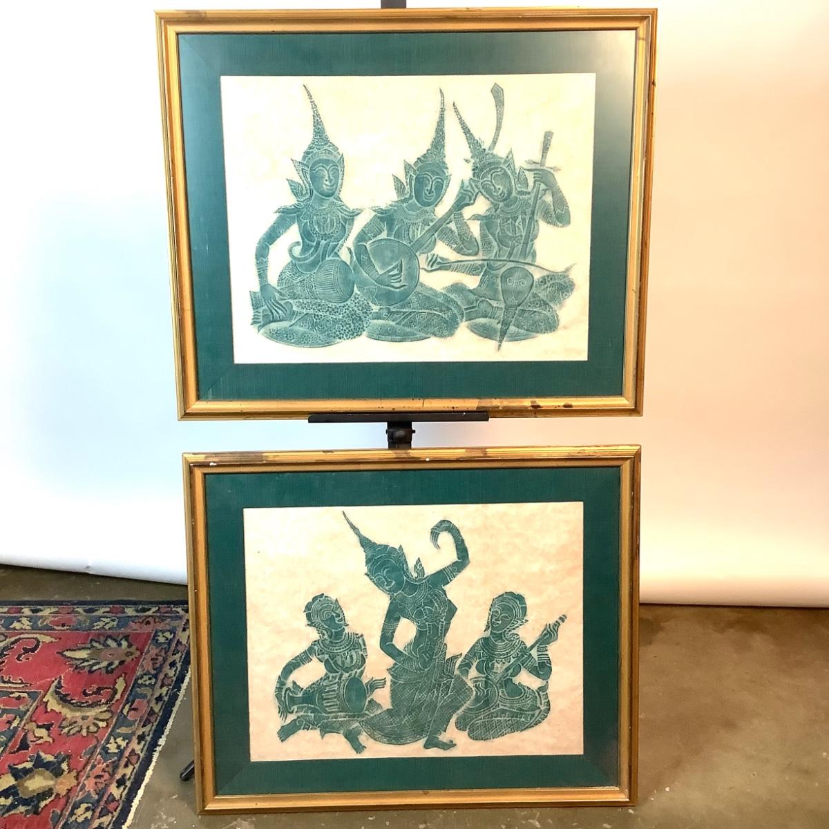 504 Vintage Cambodian 1960's Angkor Wat Temple Charcoal Rubbing Pair