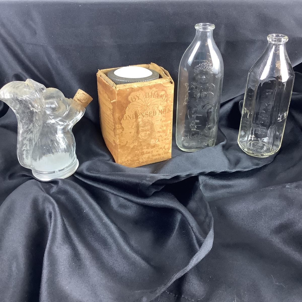 5041 Antique Pyrex Baby Bottles Bordens Condensed Milk Bottle with box