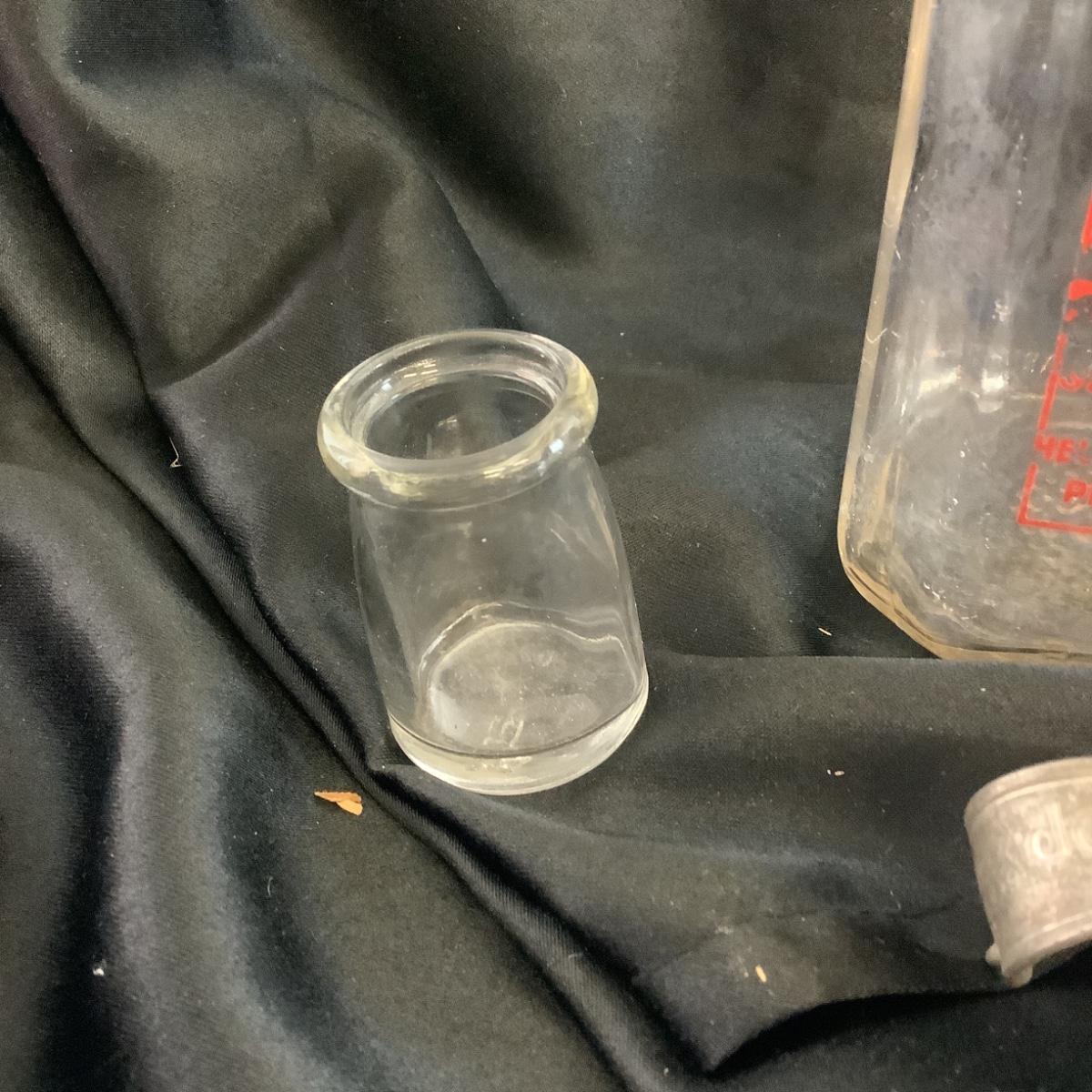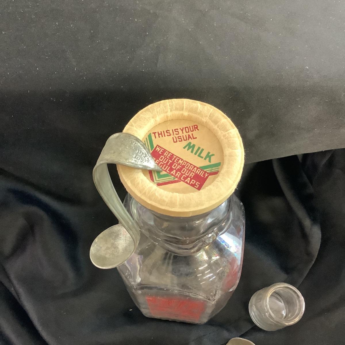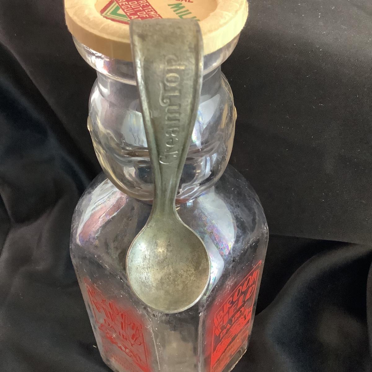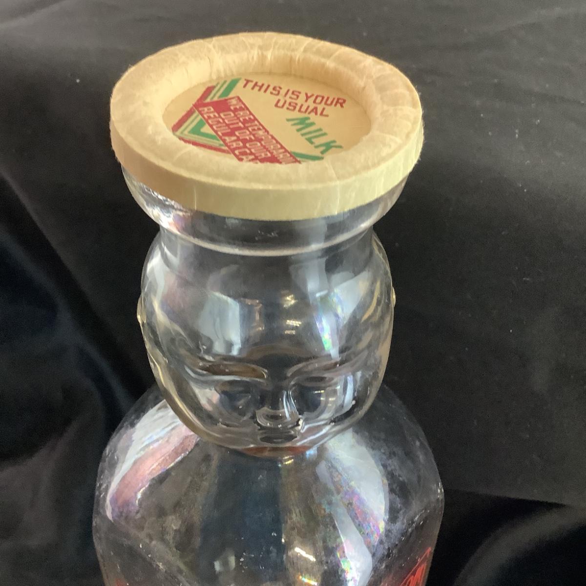 Antique Brookfield Cream Top Baby Face Milk Bottle with Creamer and Two Creamer spoons