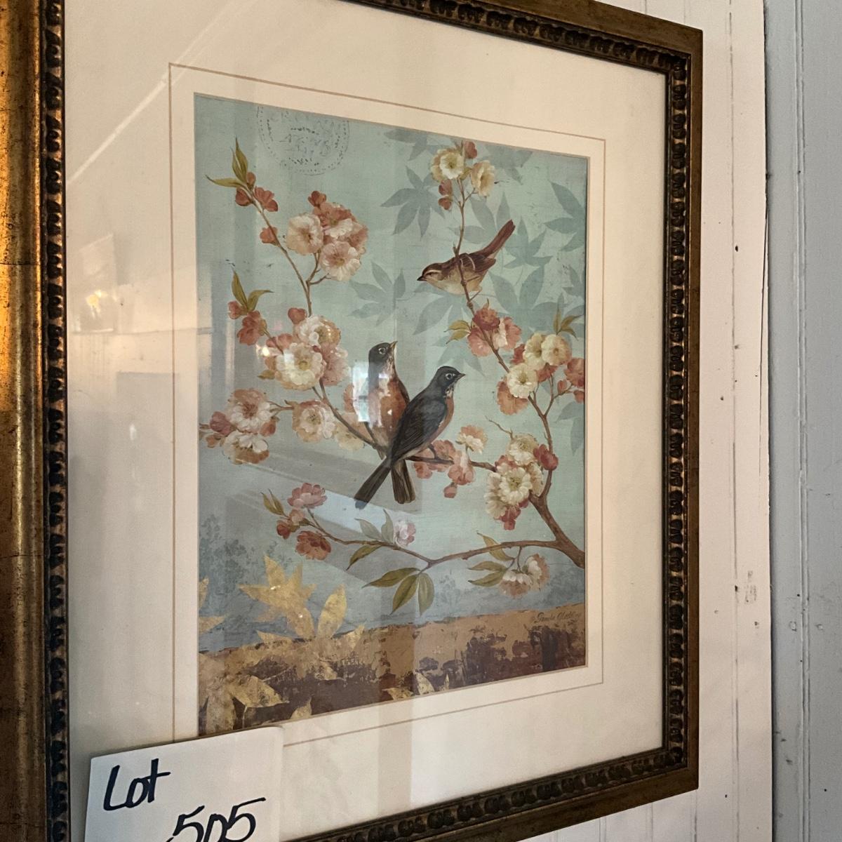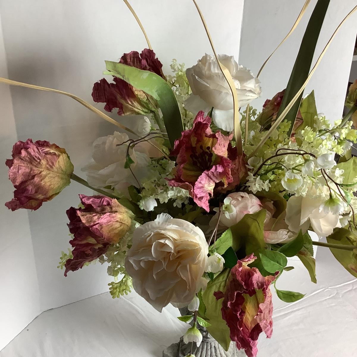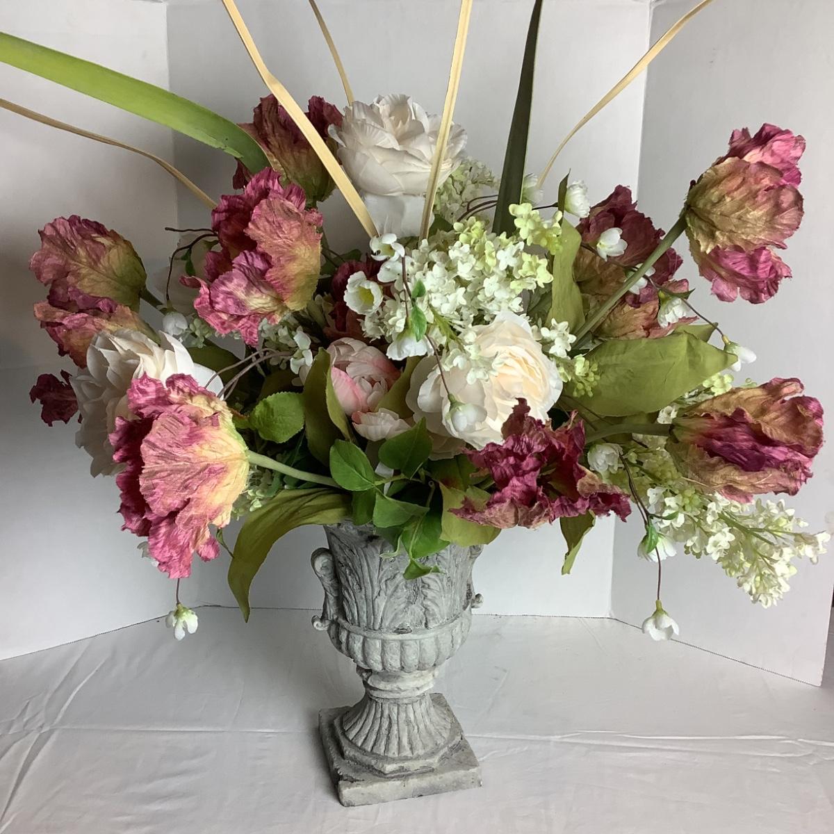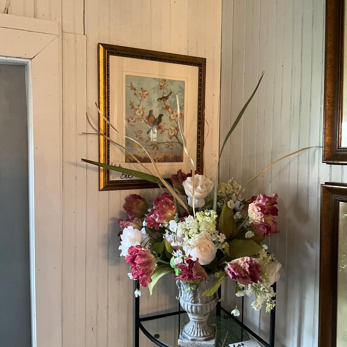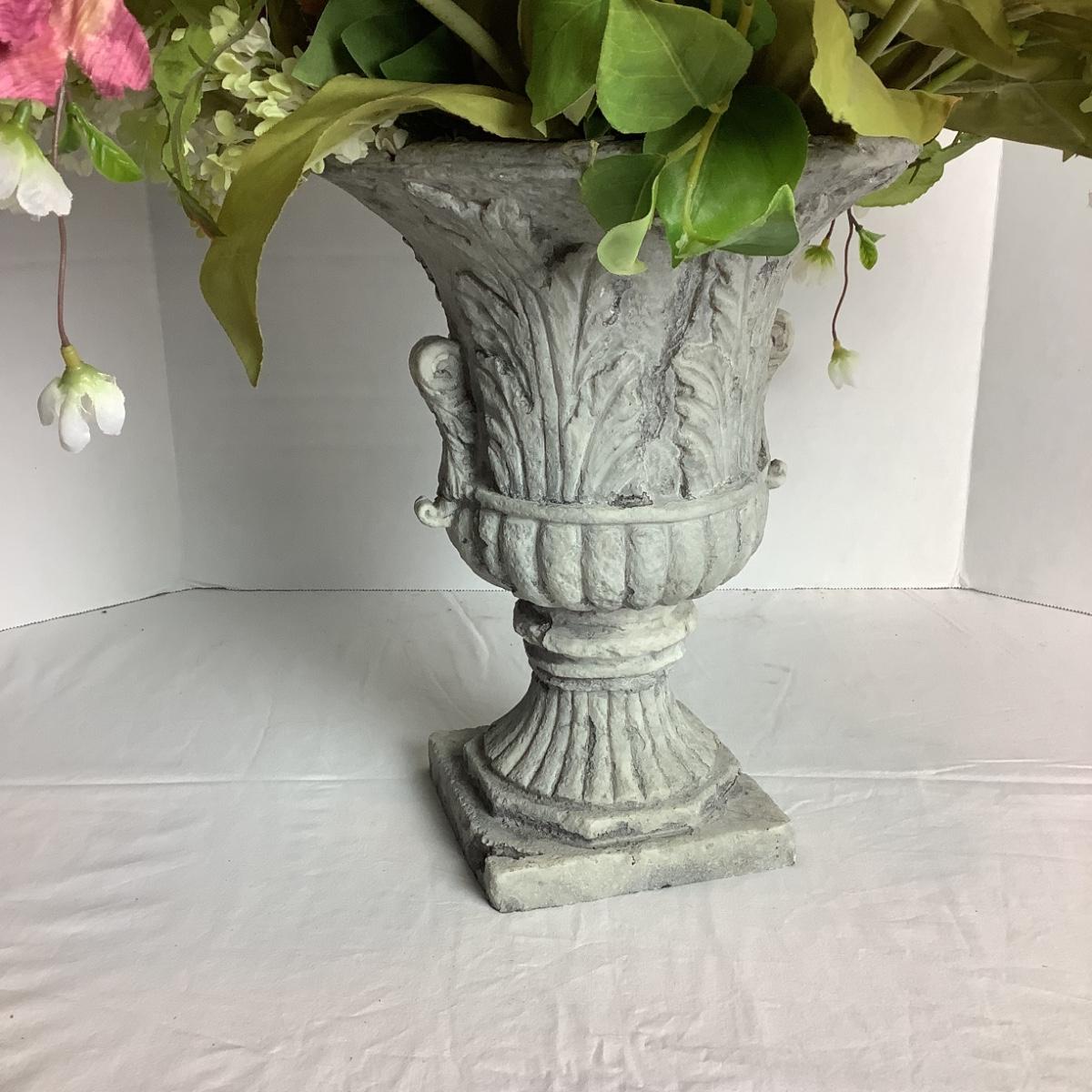 505 Faux Floral Arrangement In Faux Stone Urn with Robin Bird Print