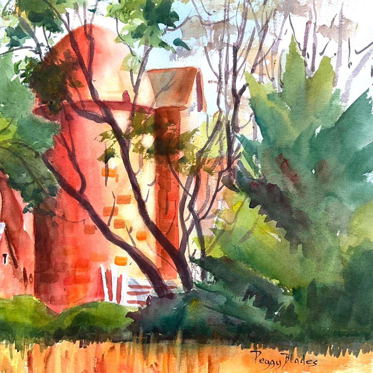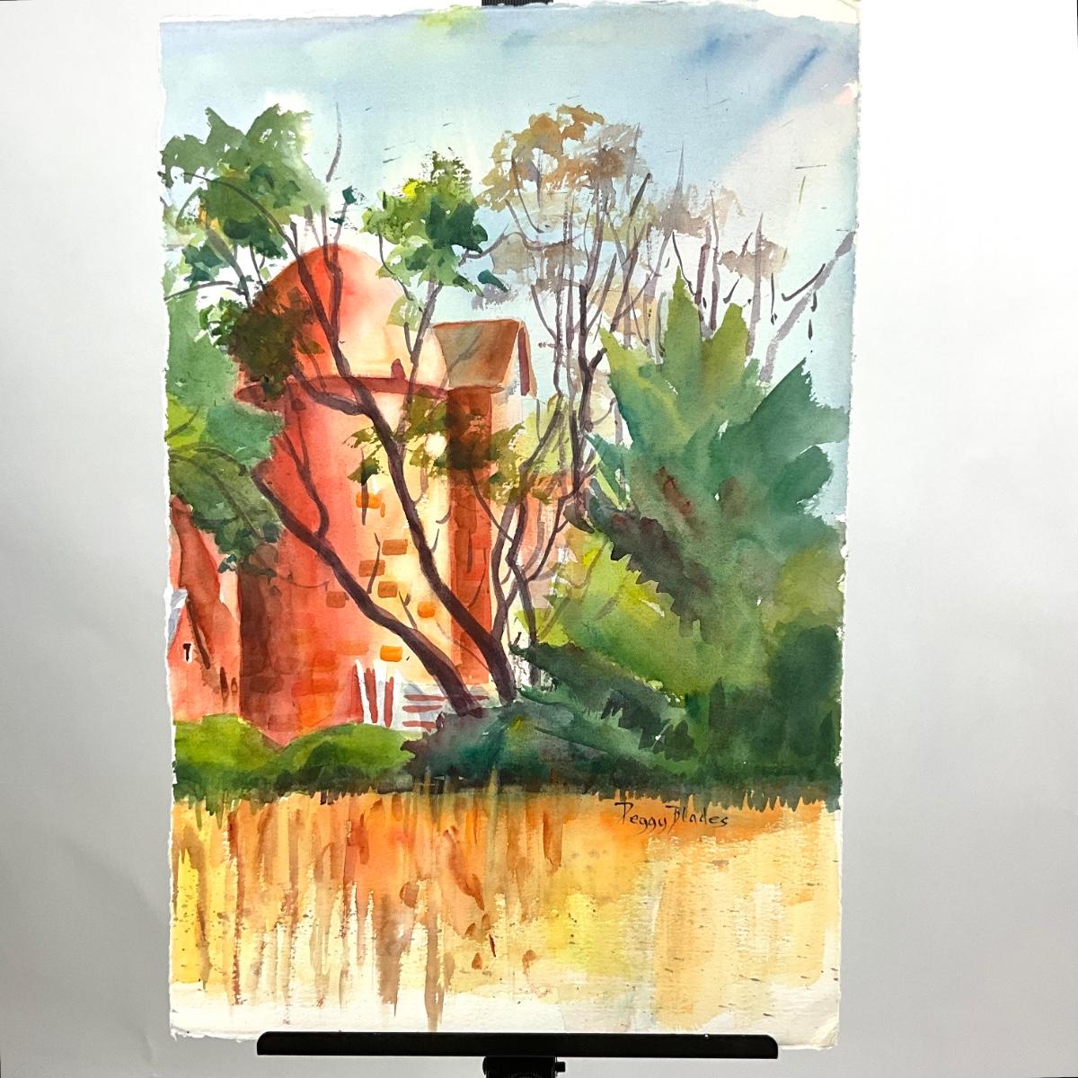 505 Original Watercolor of Farm Silo by Peggy Blades