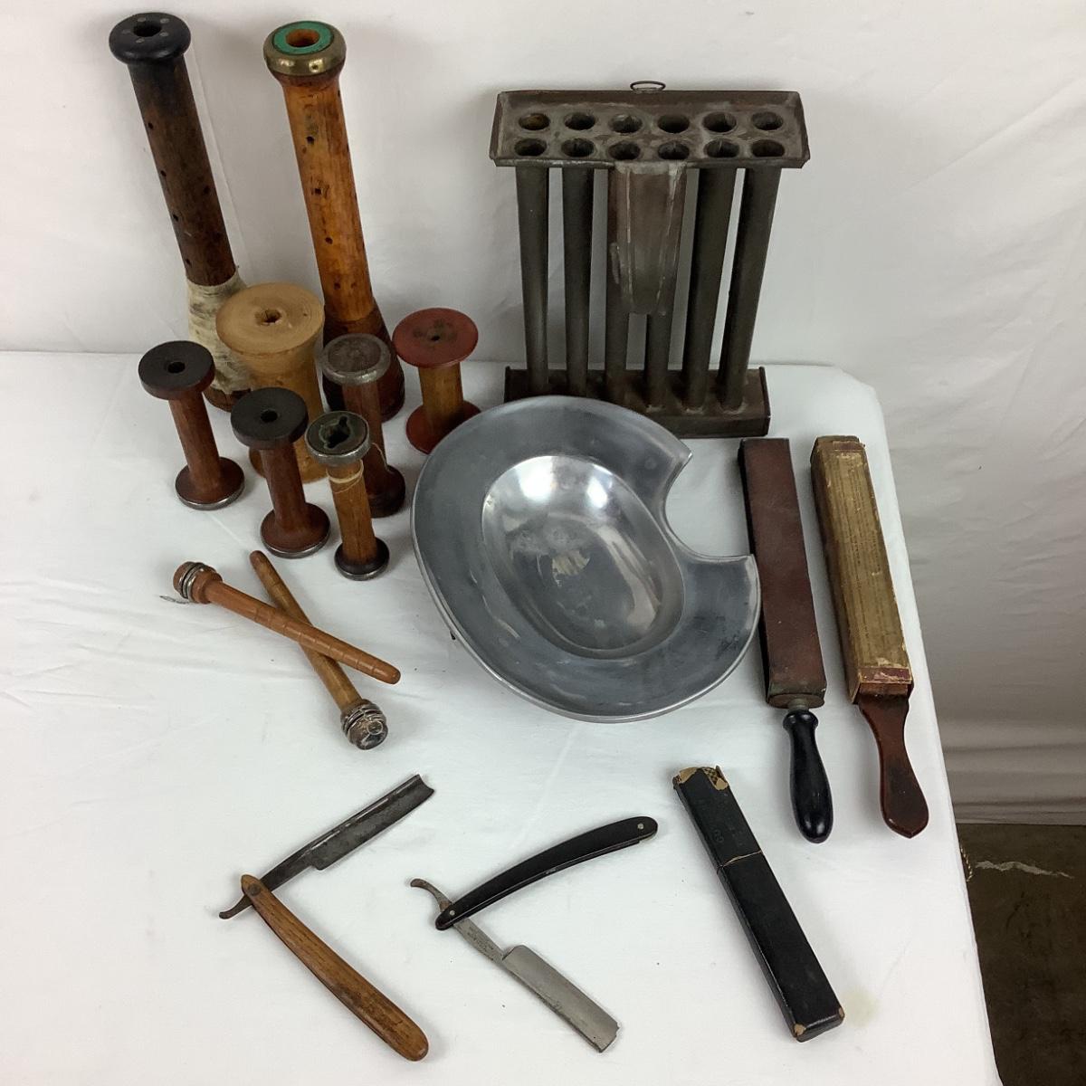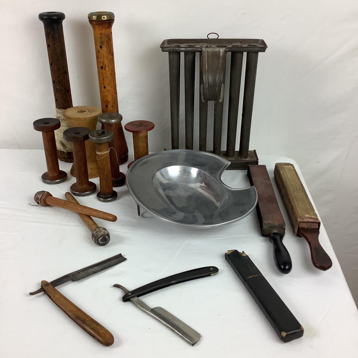 Spools, Candle Form, Wilton Basin, Imperial Razor, Marshes Sheppard Razor & Razor Sharpeners.