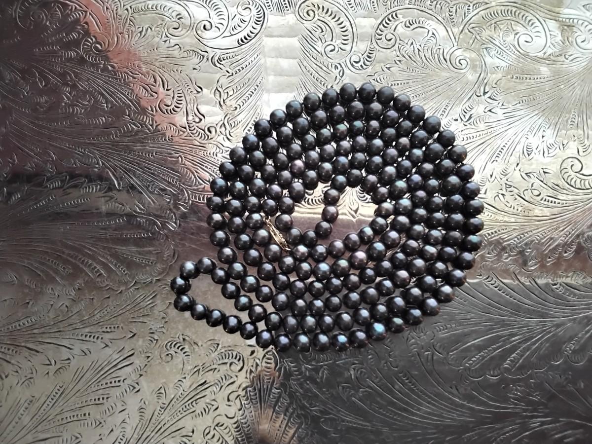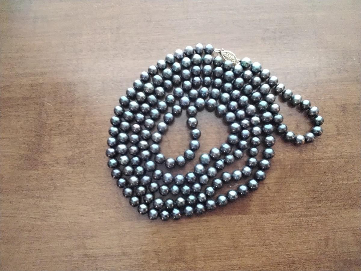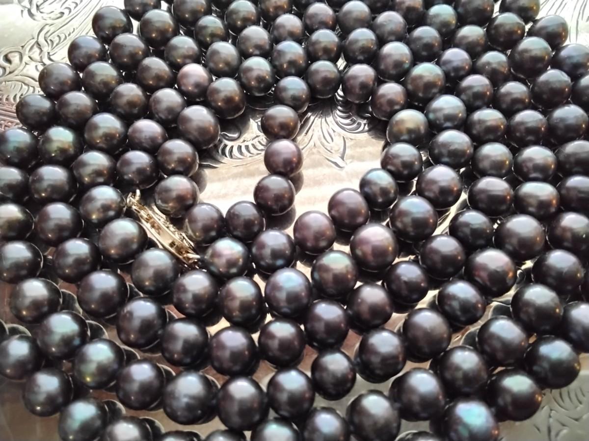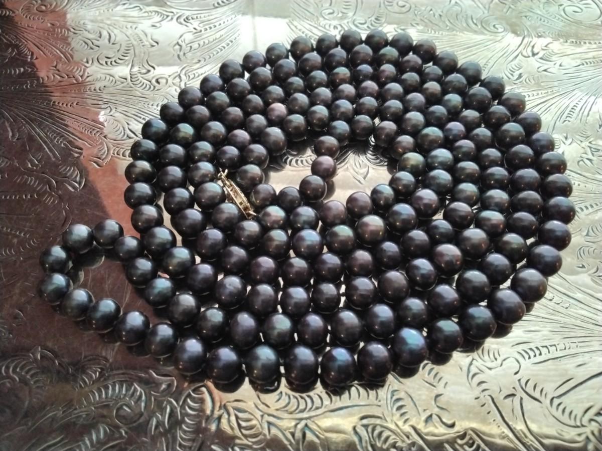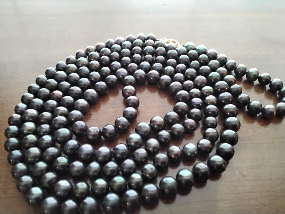Gorgeous new tahitian pearl necklace with bronze overtones. 14k gold clasp it loops twice easily Professionally knotted on double silk strands this beauty is sure to become a family heirloom. This one appraised at $825.