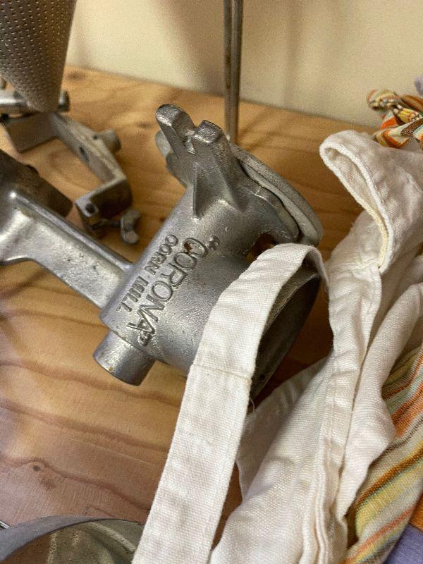 #508 B Canning Accessories: CORONA Corn Mill Grinders & Stainer