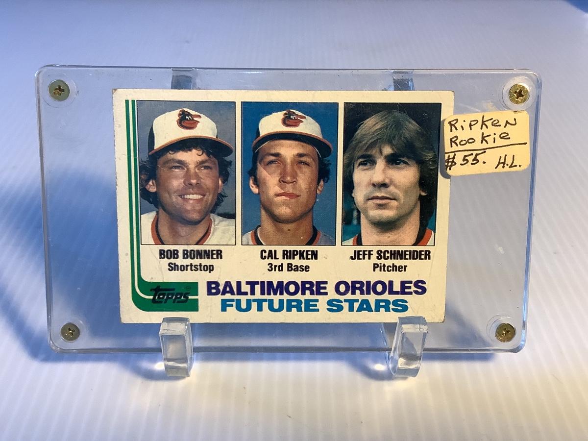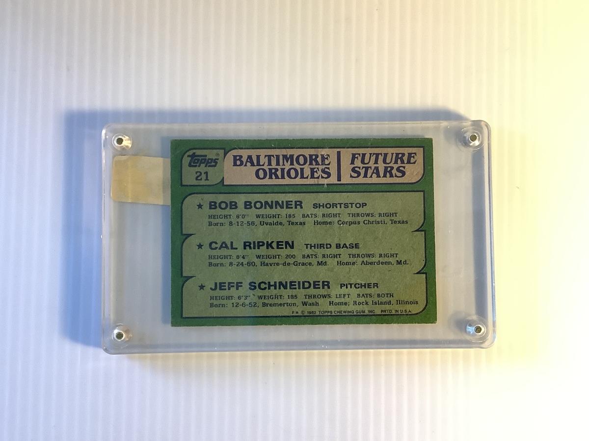 1982 Topps Baltimore Orioles Super Future Stars Bobby Bonner, Cal Ripken, Jeff Schneider Rookie Card #21.