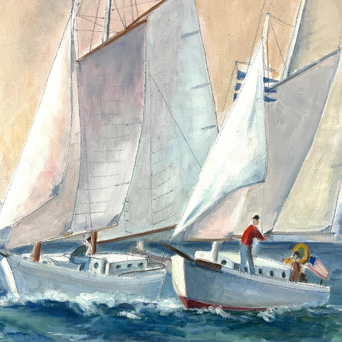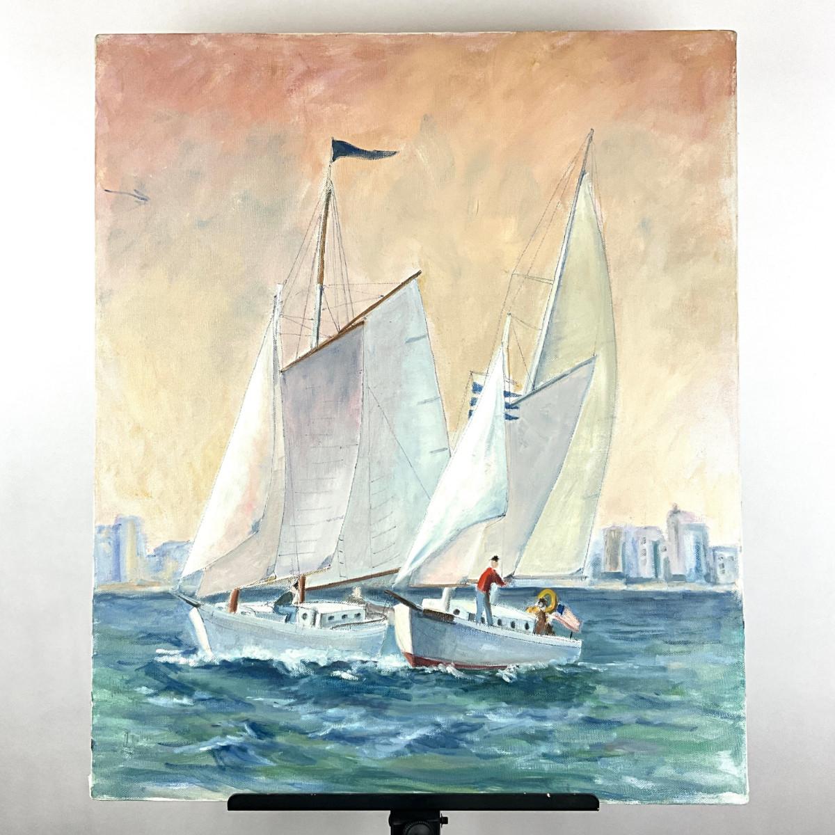 509 Acrylic On Canvas Seascape With Two Sailboats