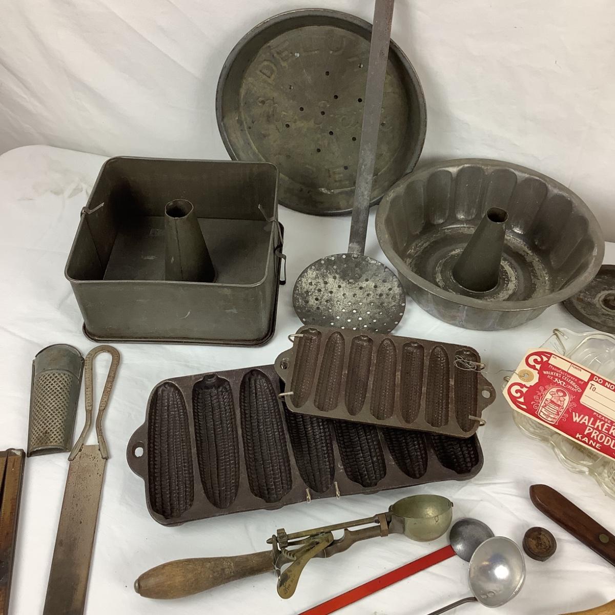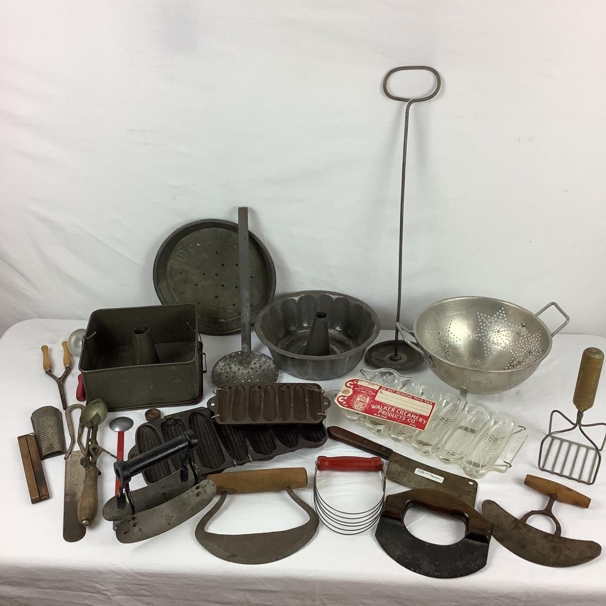 5097 Assorted Antique Kitchen Tools & Cake Molds/Ice Cream Molds