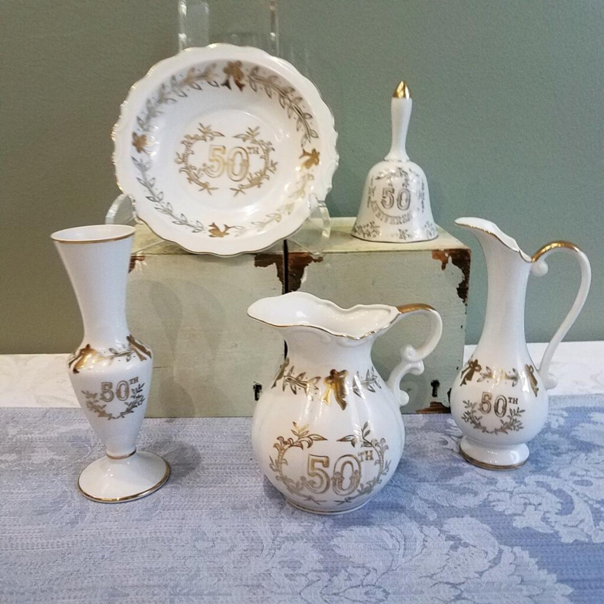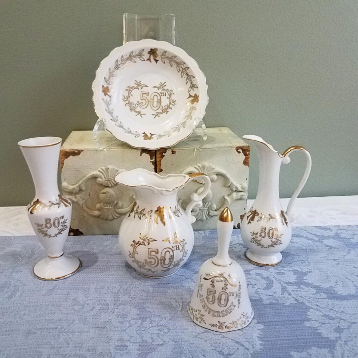 50th Anniversary 5 pc set, vintage Lefton China, hand painted. Japan. Very good condition!