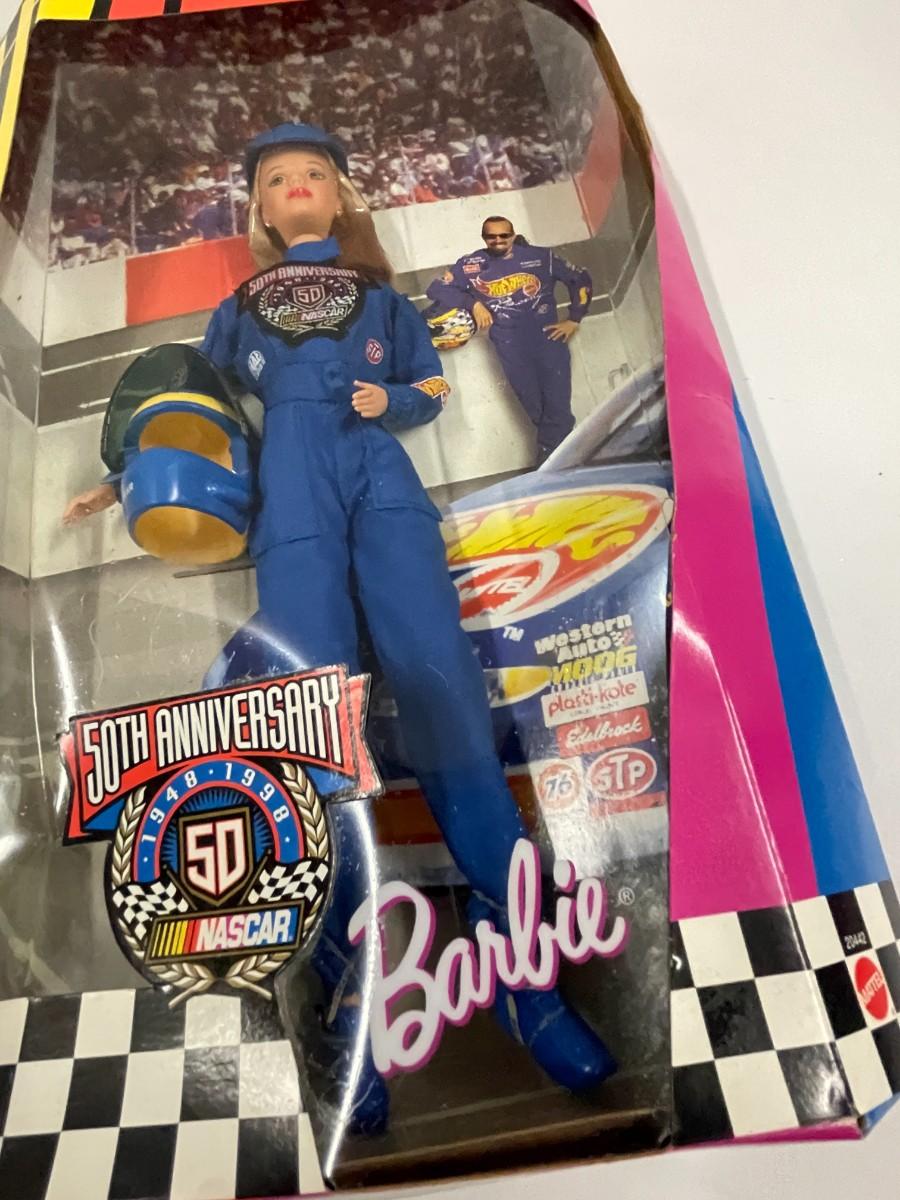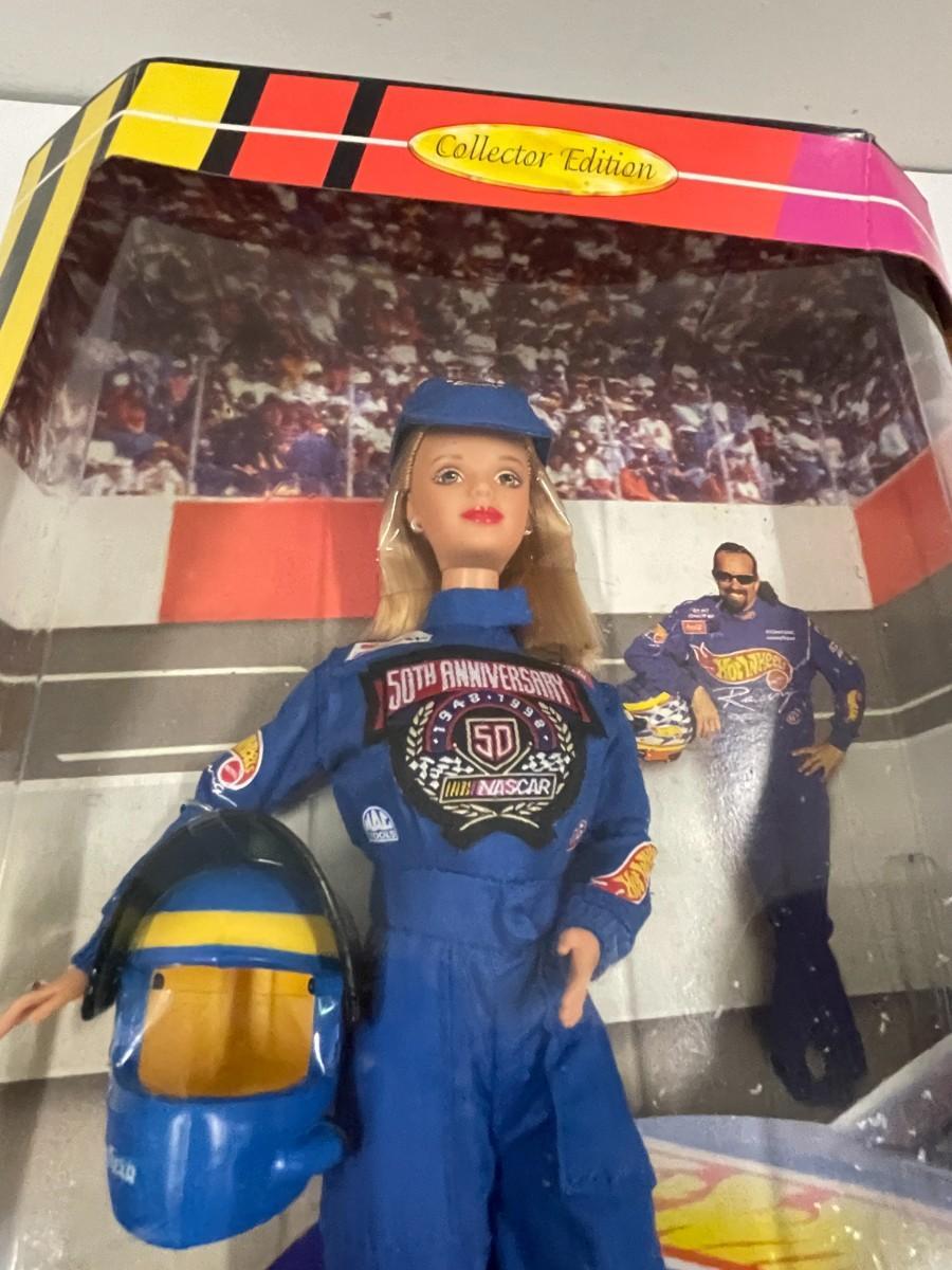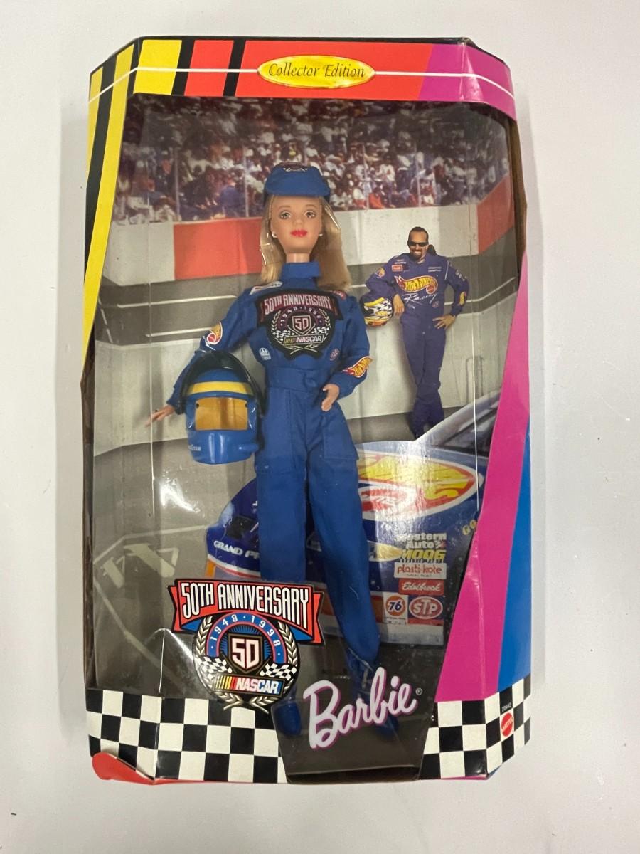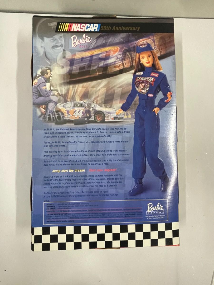 50th Anniversary Collector's Edition Nascar Barbie, new in box. Box has some minor damage.