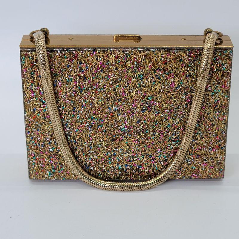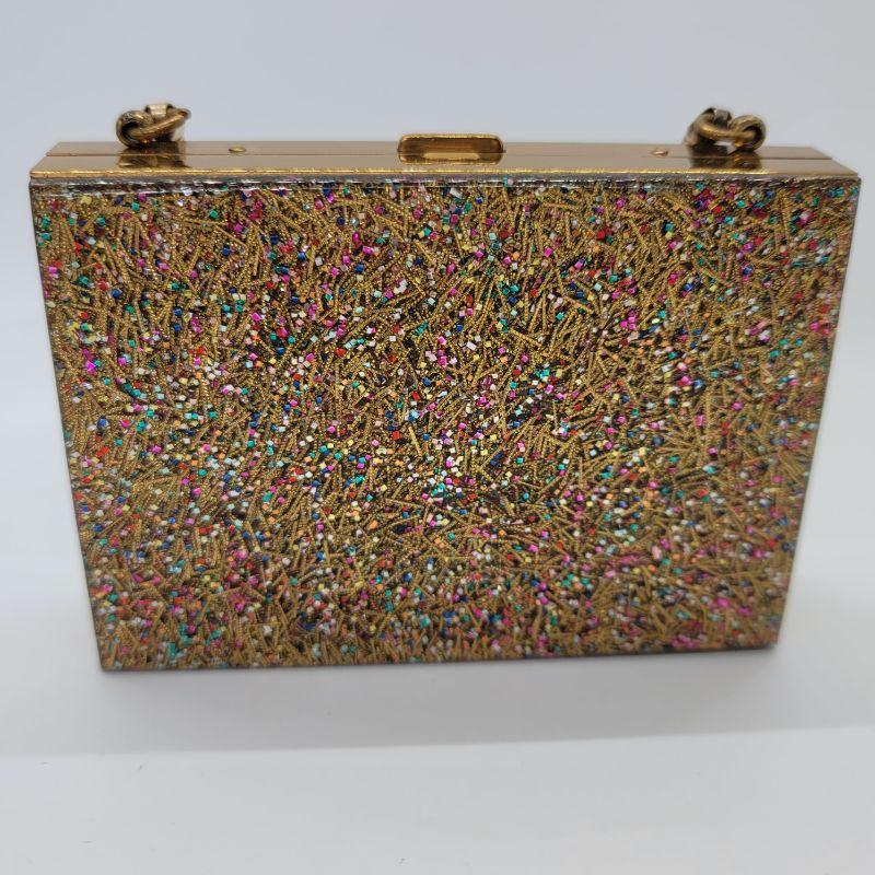PJ51** Vintage lucite, "confetti " make-up compact carrying case.