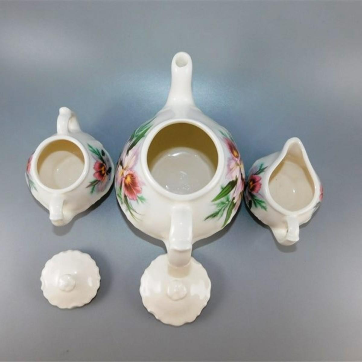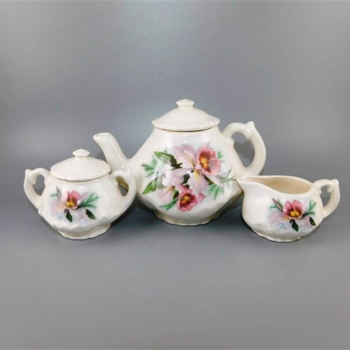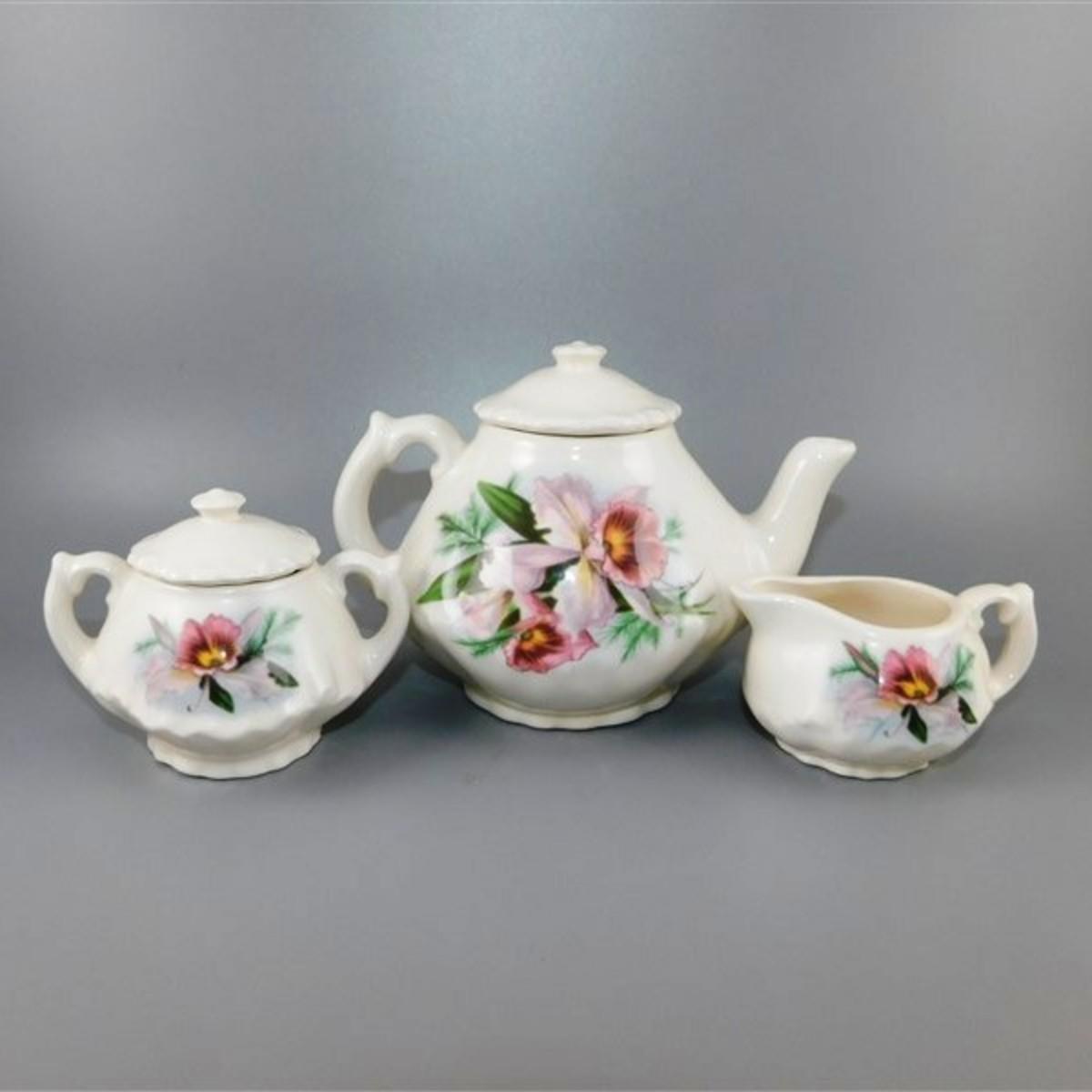 51 Best of Friends Industries 1997 Tea Set Lot of 17 Including Lids with Floral Design- Tea Pot 6 1/2 x 4 1/2
