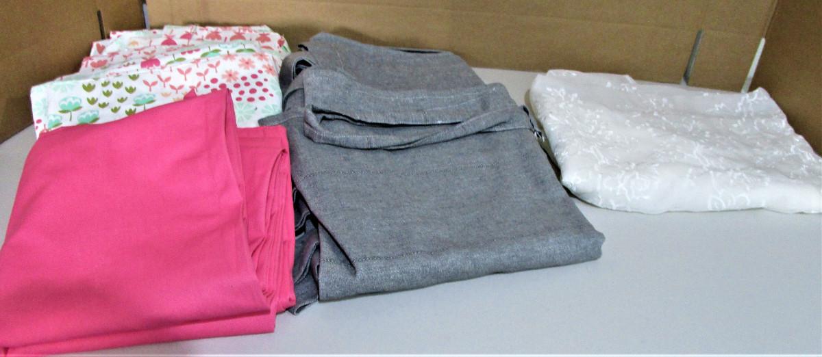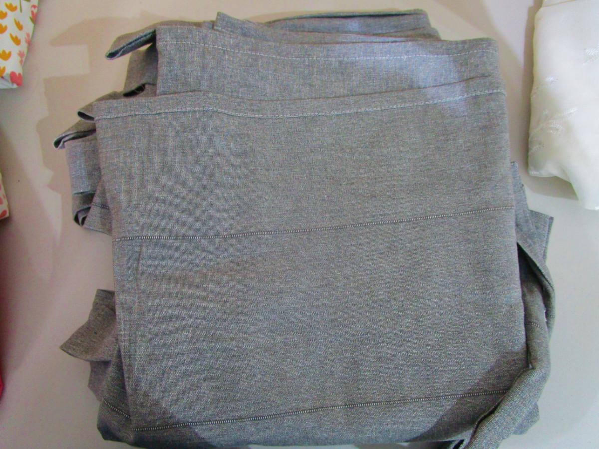 1- embroidered curtain 55" width x 60" height; 1 Pink Black out curtain 41" wide by 83"; 2- Print Black out curtains 41"x83"; 2- Gray curtains 55"x 98"