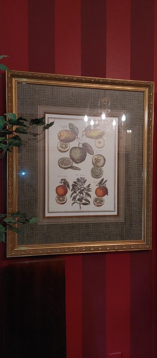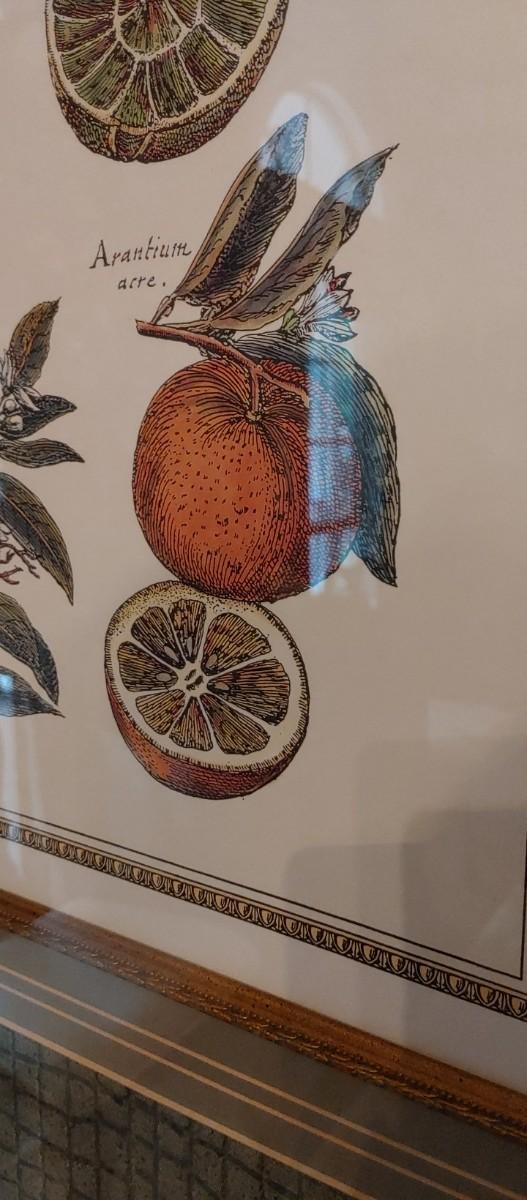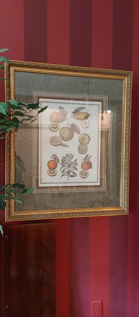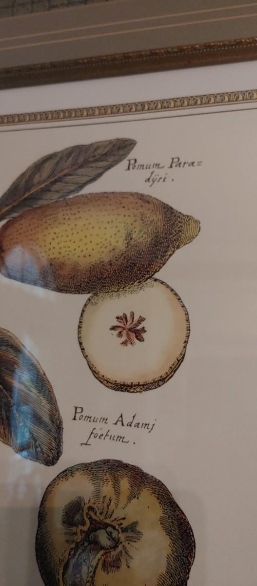 #51 Gorgeous Framed Botanical Fruit Print is a Elegant statement piece for the dining room or sun room. Measuring a generous 40 in call my 34 wide. Frame and matting are absolutely perfect!