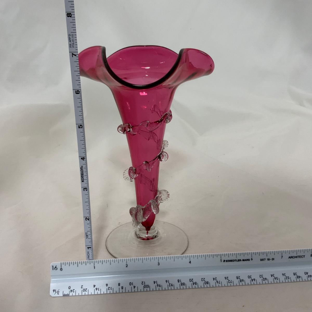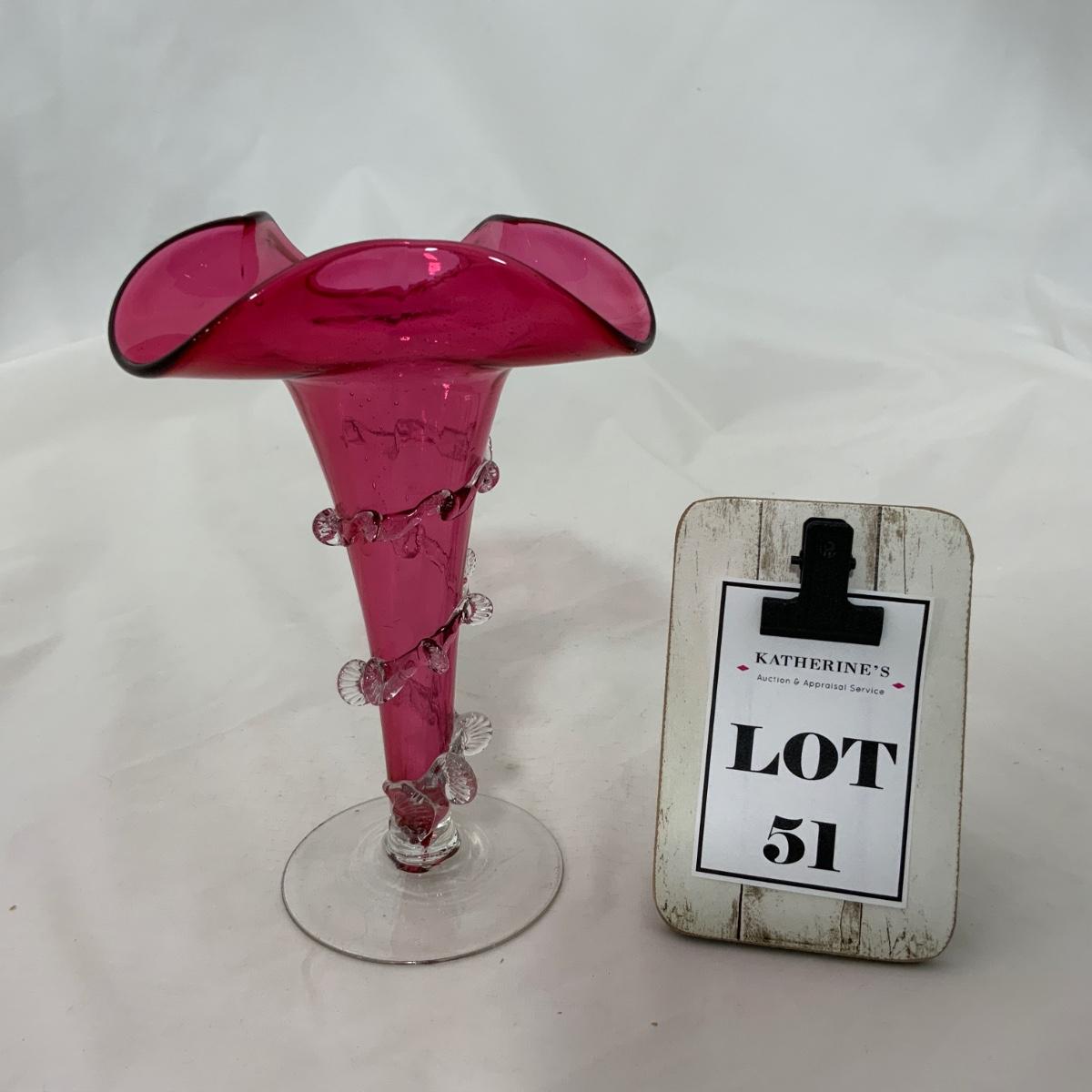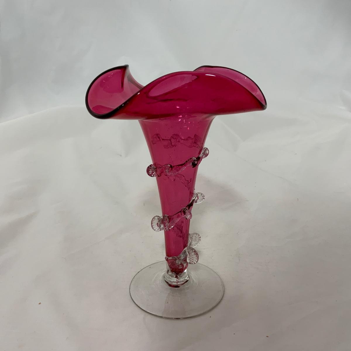 .51. Hand Blown Cranberry Vase with Applied Vine | c. 1890
