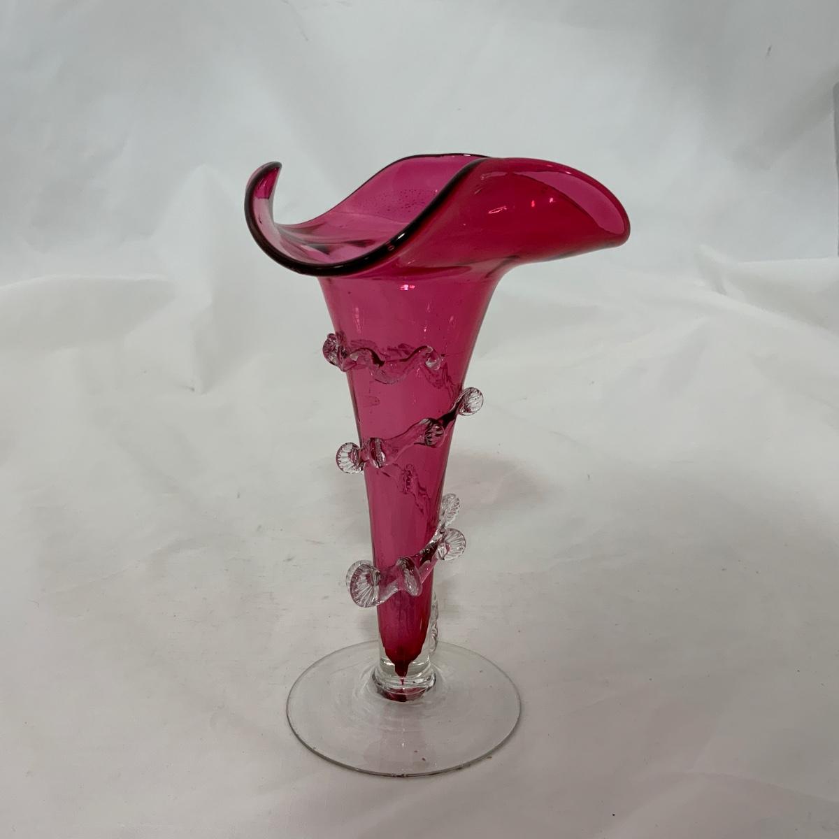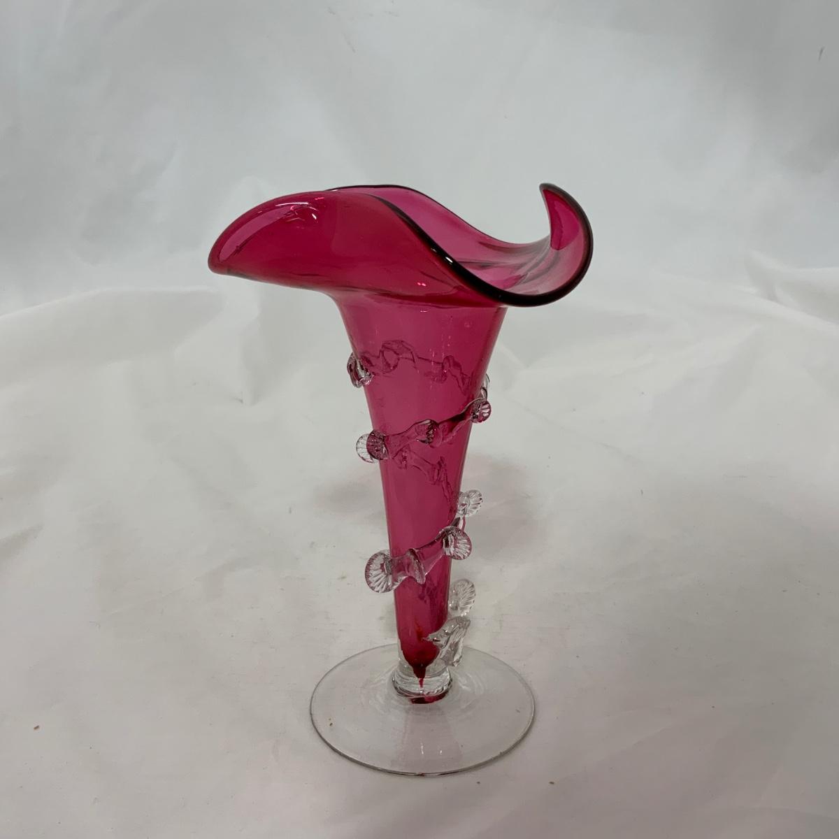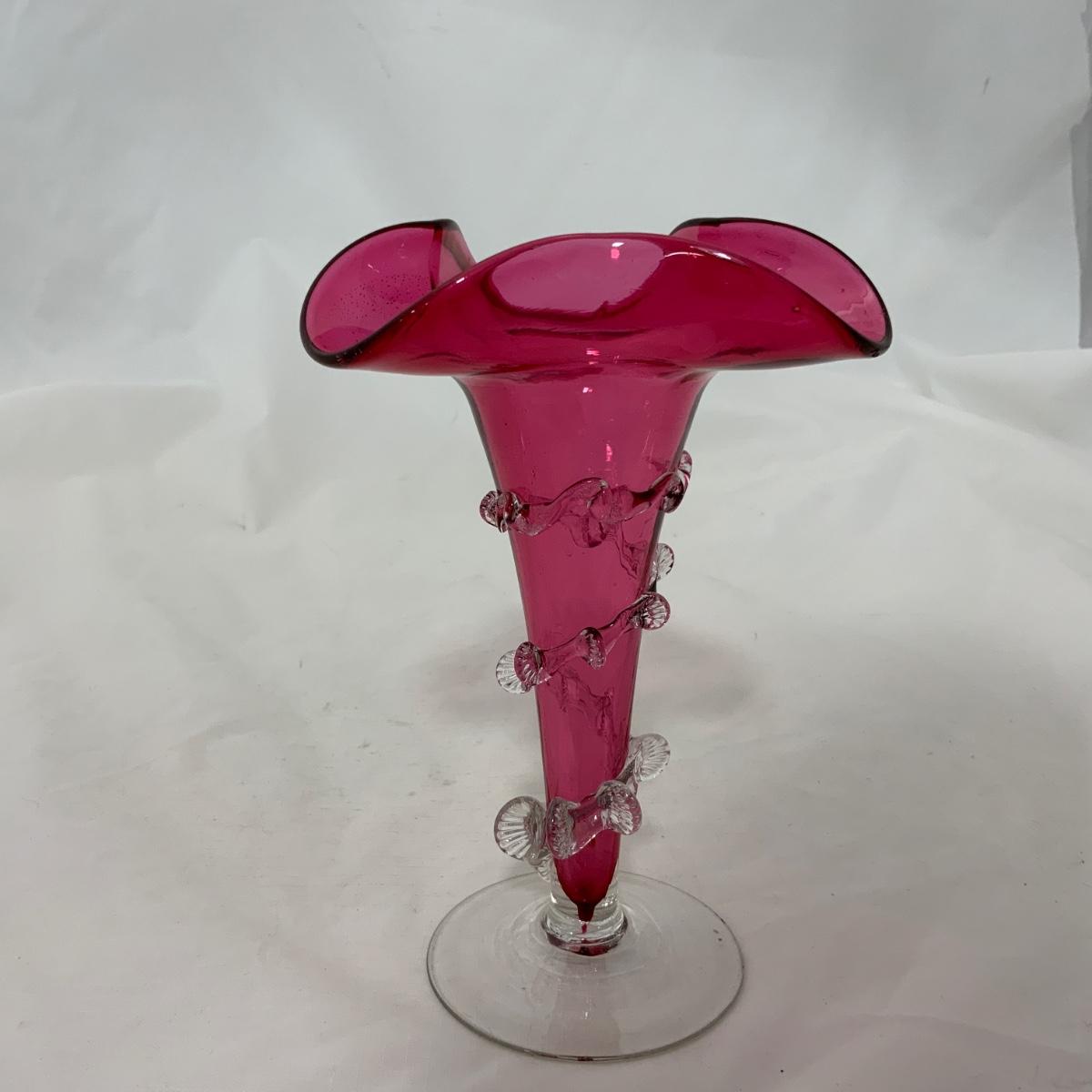 .51. Hand Blown Cranberry Vase with Applied Vine | c. 1890