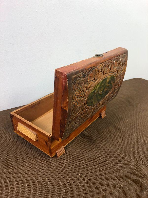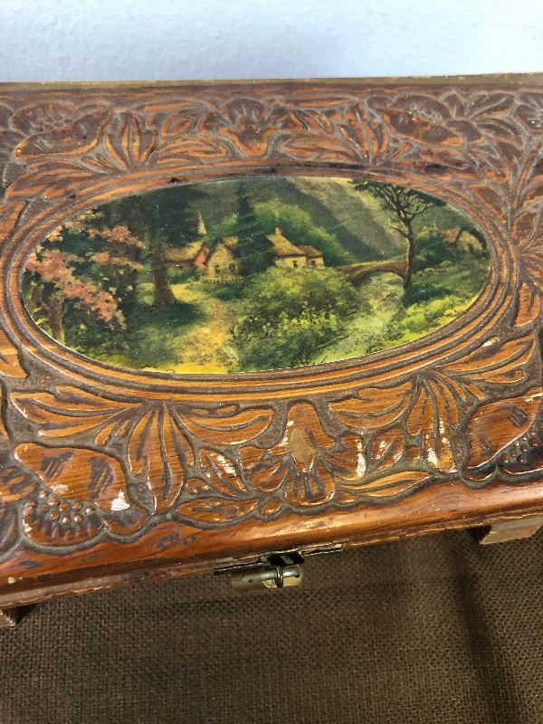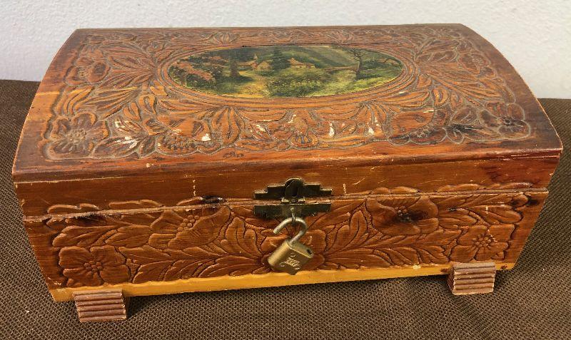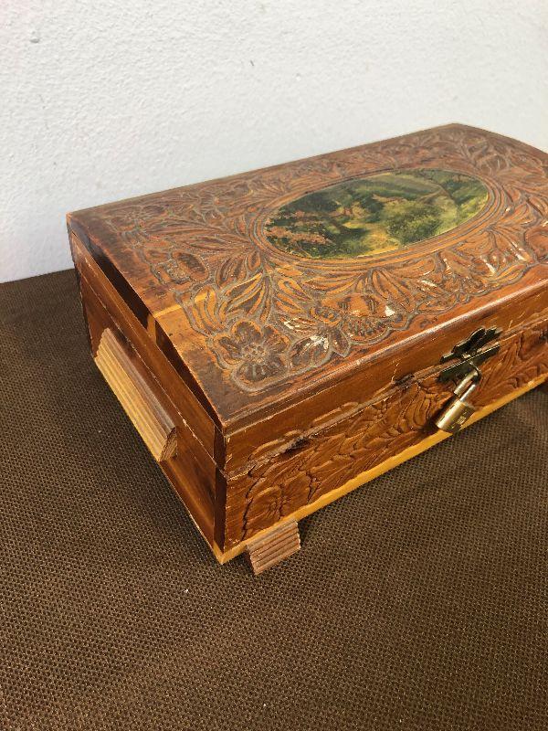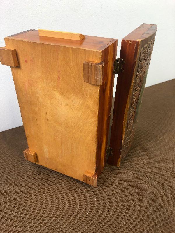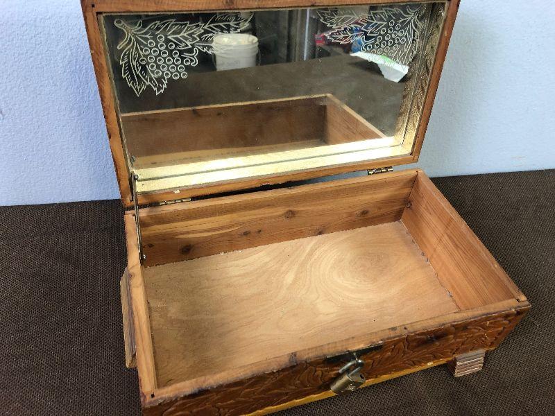 #51 Hand Carved Cedar Jewelry Box w/ mirror