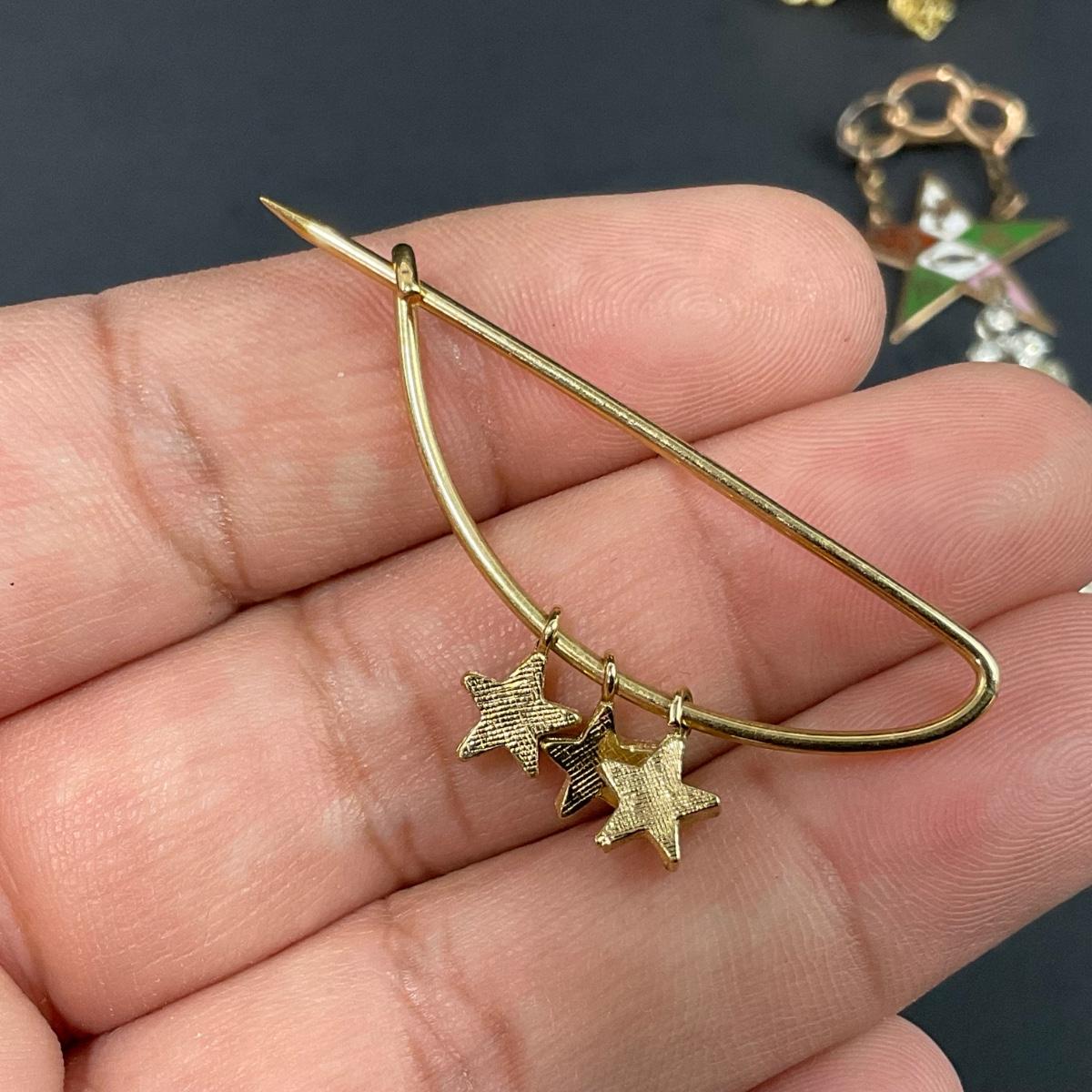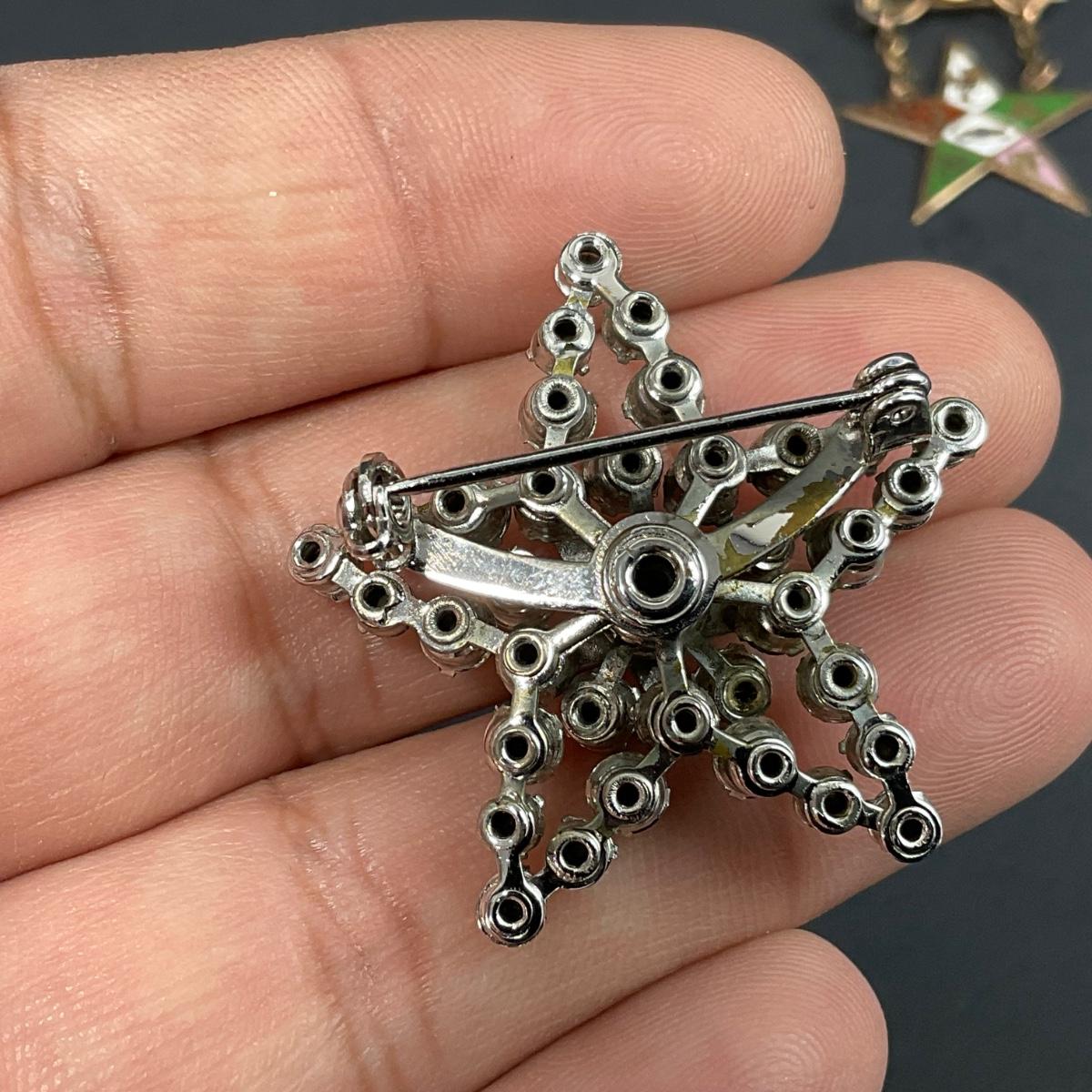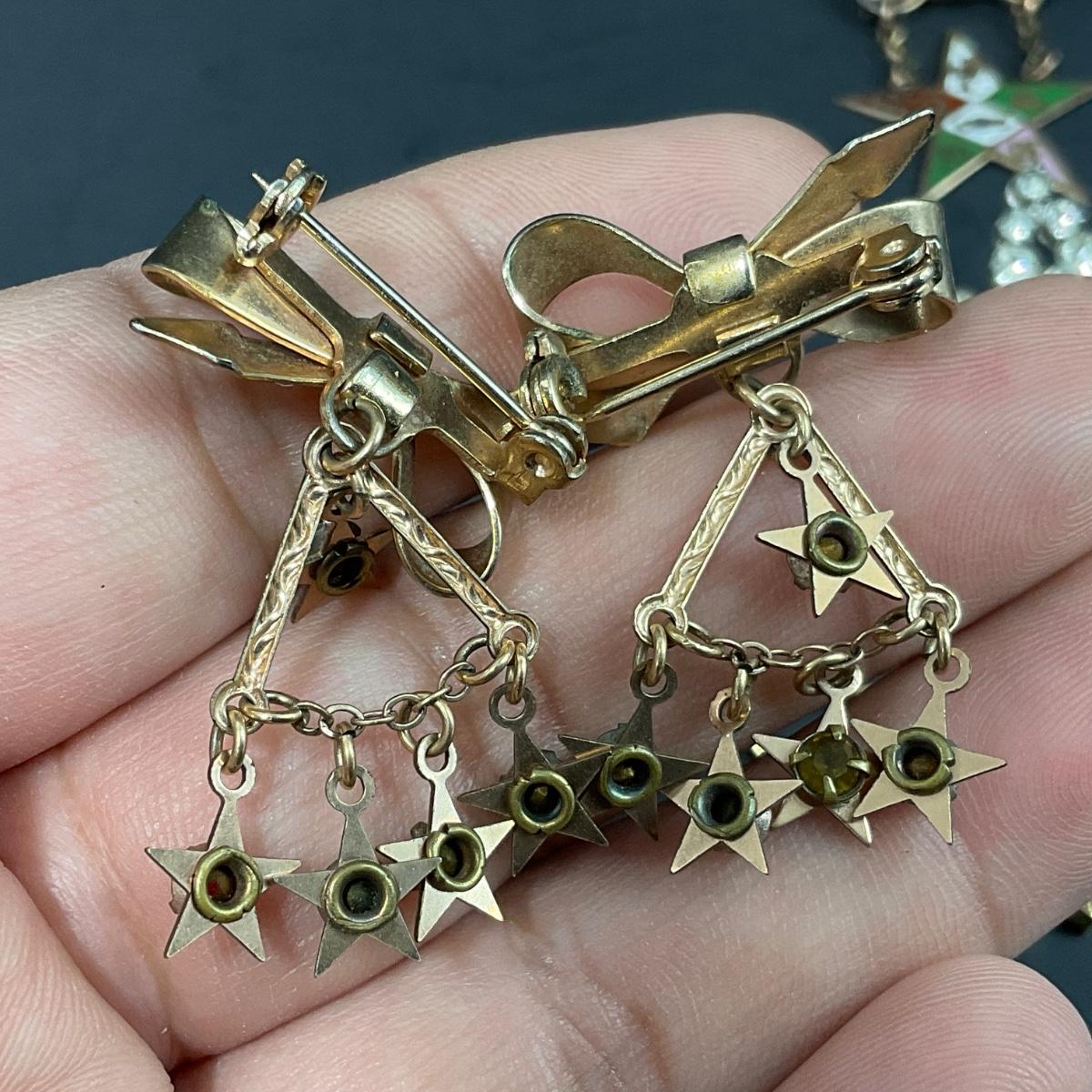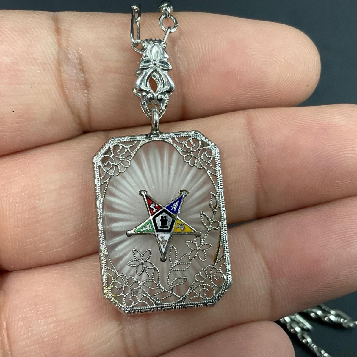 Assorted Masonic pieces including one antique Camphor glass sterling necklace, and six order of the Eastern Star Pins. Please see photos for details and condition. Any condition statement is given as a courtesy to a client, is an opinion, and should not be treated as a statement of fact. Reference to condition written, oral or within a condition report shall not be regarded as a full account of condition and may not include all defects, alterations, or restorations. Absence of a condition report does not imply a lot is flawless or lacking imperfections or damage. Katherine’s Auction & Appraisal Service shall have no responsibility for any error or omission. Returns shall not be accepted on the basis of condition. ::: Shipping is available on this lot. If you require shipping you must let us know at the close of the auction. We will coordinate with you after the item has been won. Shipping fees will include insurance up to or exceeding the value of all items being mailed. If you have any questions regarding this lot please contact the auctioneer either via this website, by direct email or by phone. PICK UP TIMES and other important information can be found in the TERMS and DESCRIPTION of the auction. Please take a look for pertinent information. Thanks!