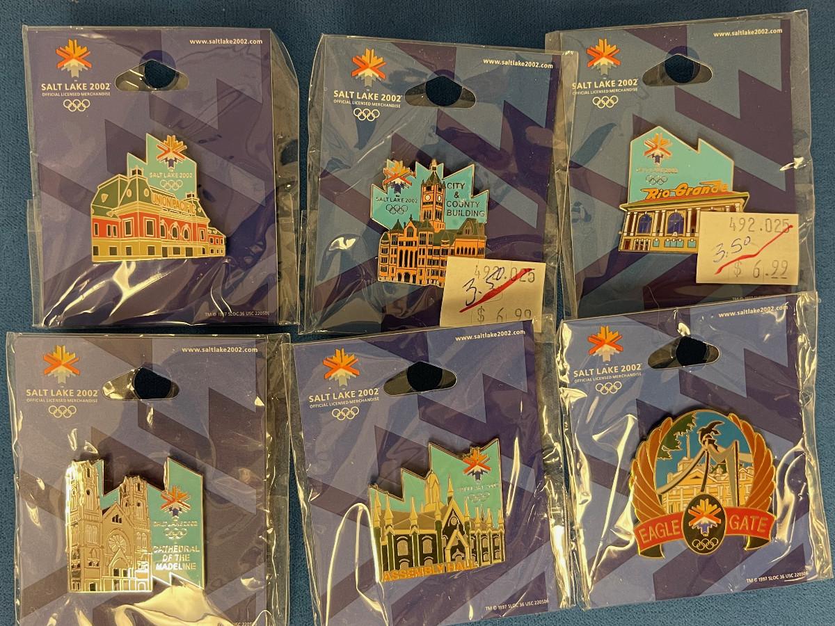 Pins are as shown in new or like new condition. This is a collection that was purchased before and up to the Olympics in 2002 here in Salt lake City. This is a shipping only auction, you will be required to pay shipping on all auctions. 1-4 items = $4, 5-10 items = $6, 10+ items = $8.