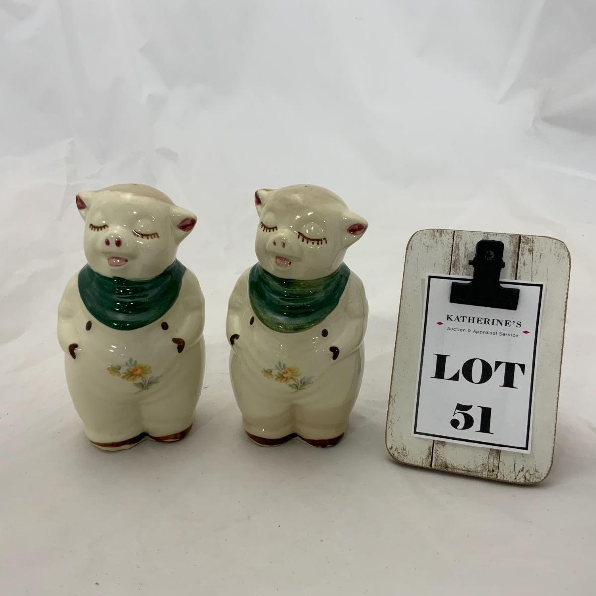 -51- SHAWNEE | 1940s Pigs | Master Salt and Pepper Shakers | Smiley