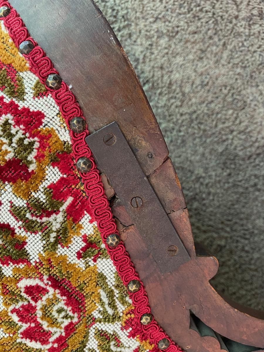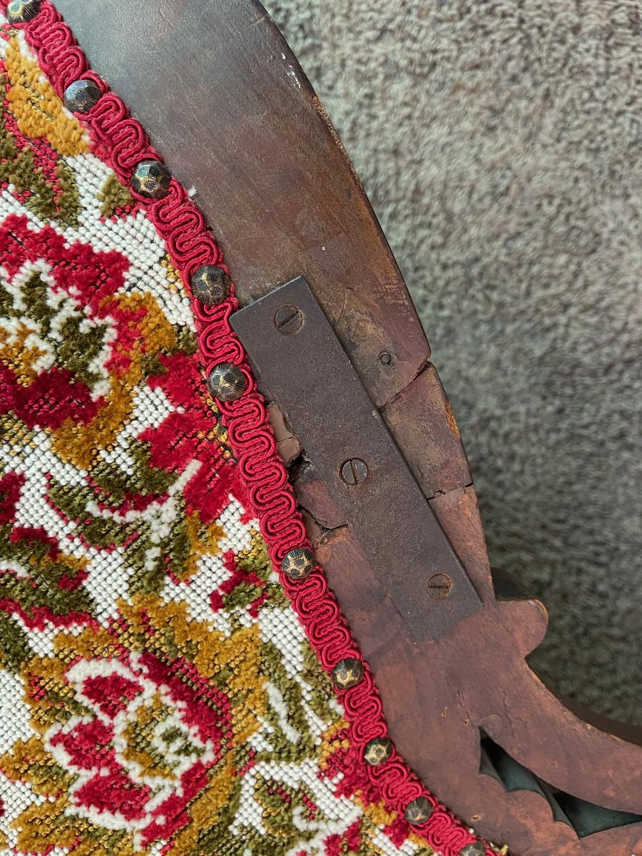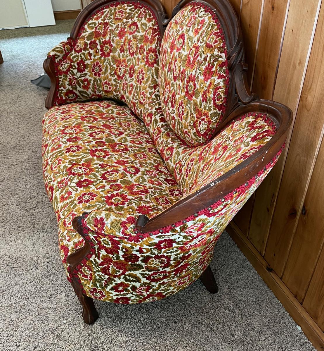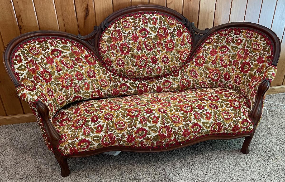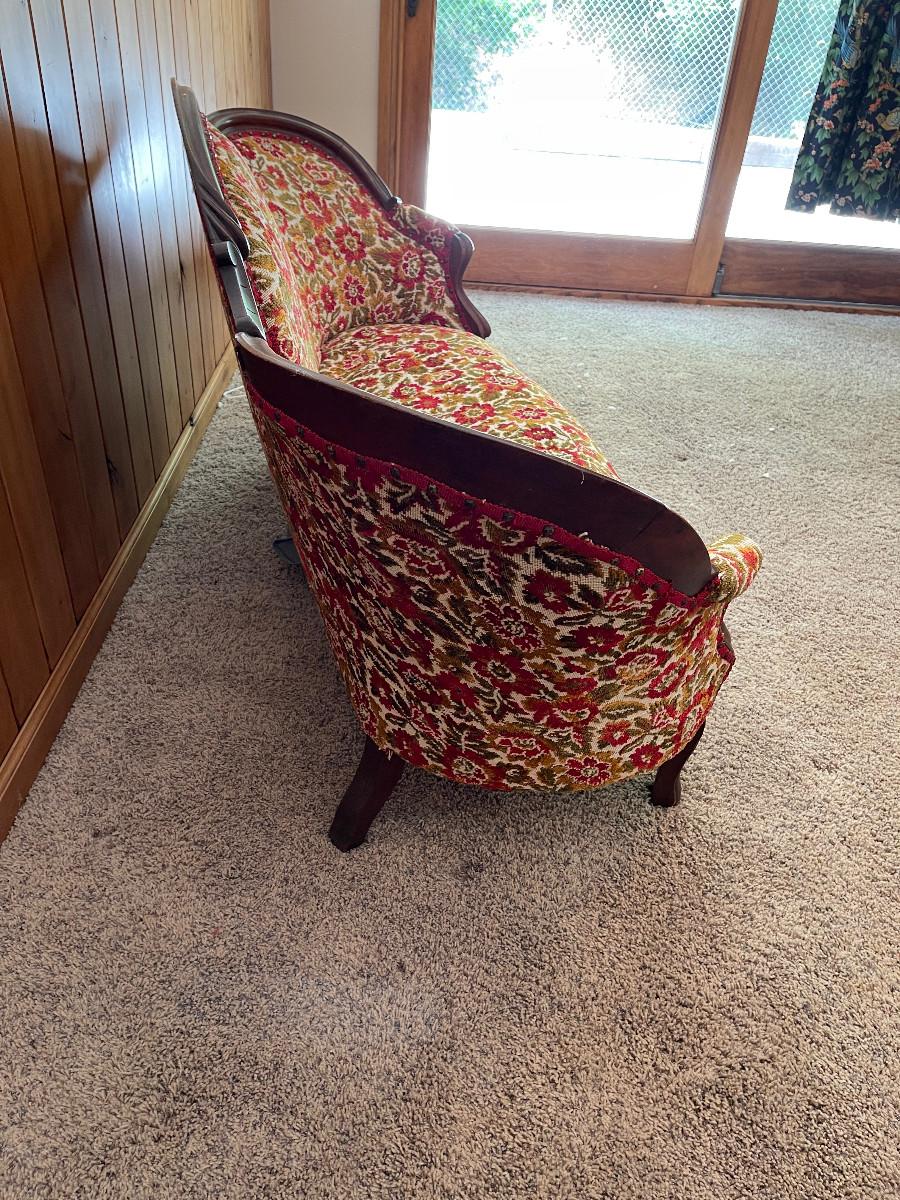#51 Walnut Victorian Settee Baroque Tapestry Style Fabric.