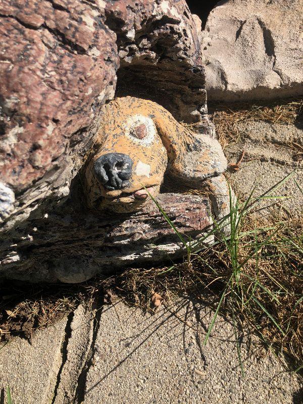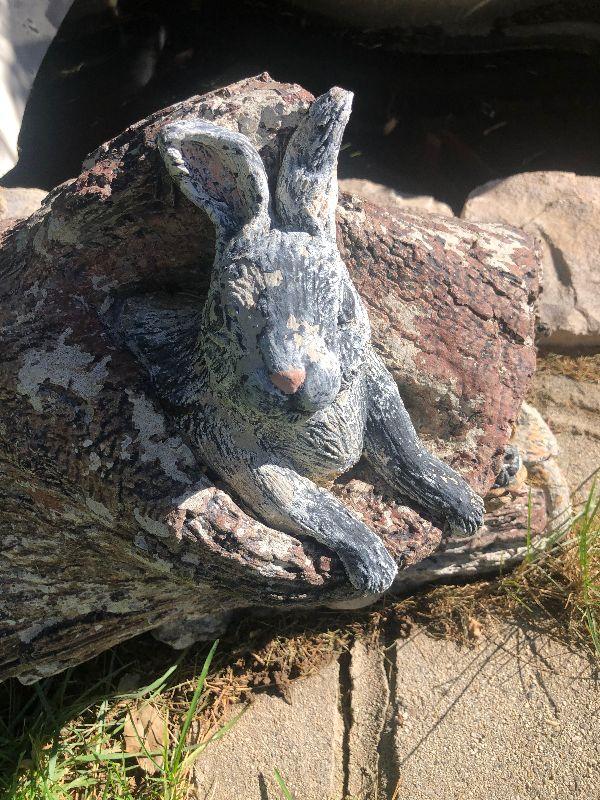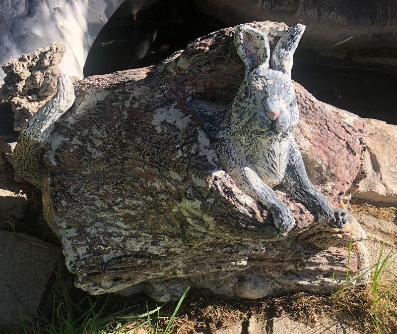 #510 Concrete Yard ART RABBIT AND BEAGLE IN A LOG!